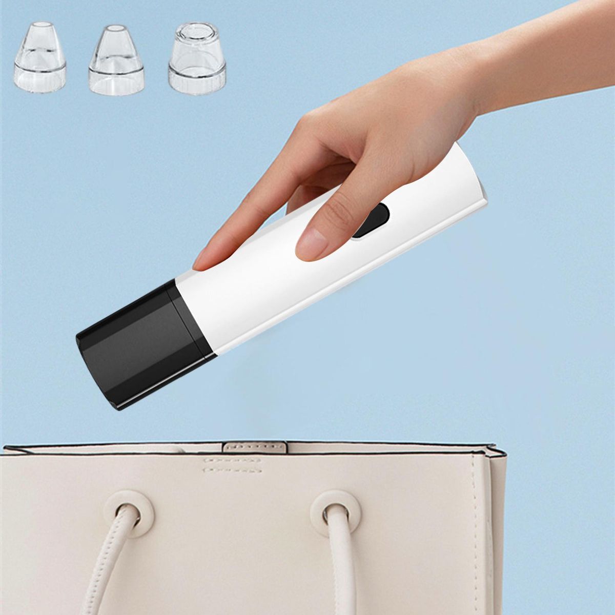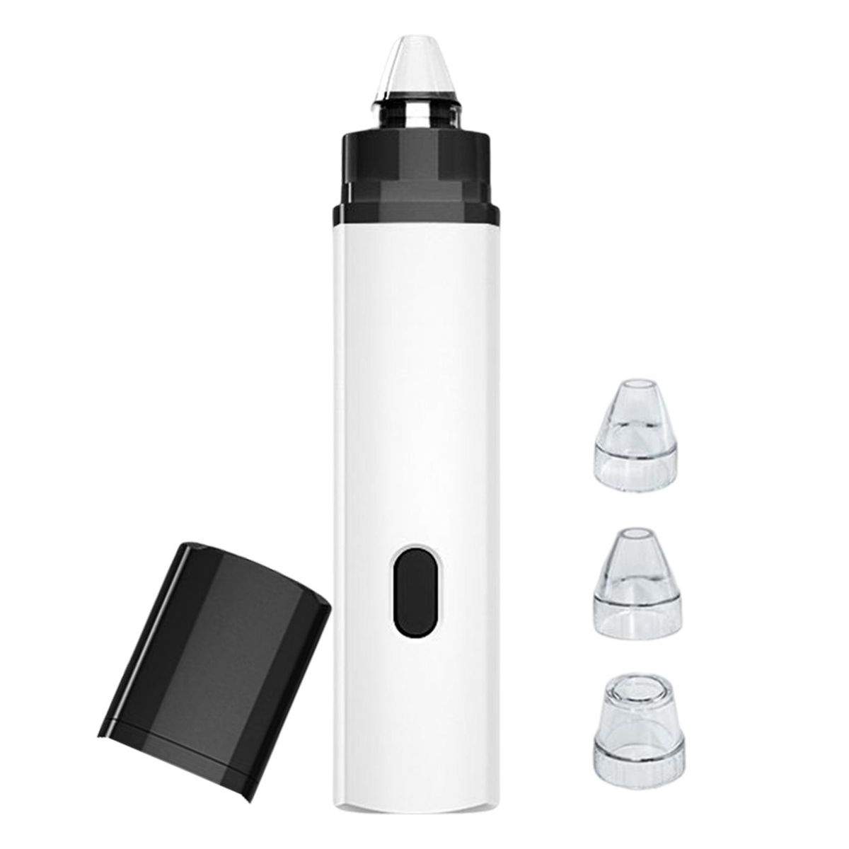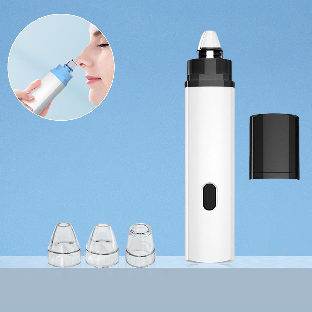 3 suction heads for free adjustment, widely suit different skin types. Small round mini tip, suitable for small areas such as the nose tip/perinasal, for local deep cleaning; Elliptical medium hole tip, suitable for nose wings, fit the curve of the nose circumference for multi directional cleaning; Round large hole tip, suitable for use around the nose, quickly removes blackheads of large areas.