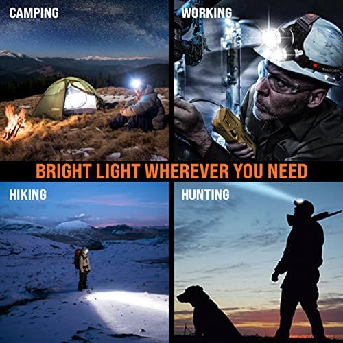 - CUSTOM COMFORT: The hiking headlamp is tough, lightweight (0.4 lbs) with max omfort. Thanks to the adjustable sweat-resistant headband light straps the led head lamp fits any size. Perfet ompanion as amping headlight, bakpaking headlamp.
