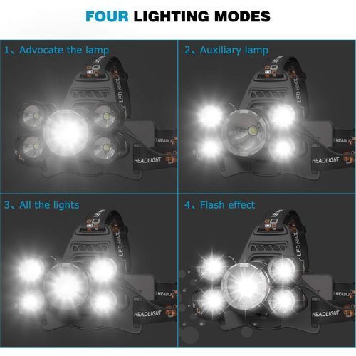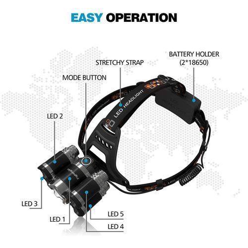 1X Headlight 40000 Lumen headlamp 5T6+Q5 LED Head Lamp Flashlight Torch Lanterna head light with battery AC/DC charger