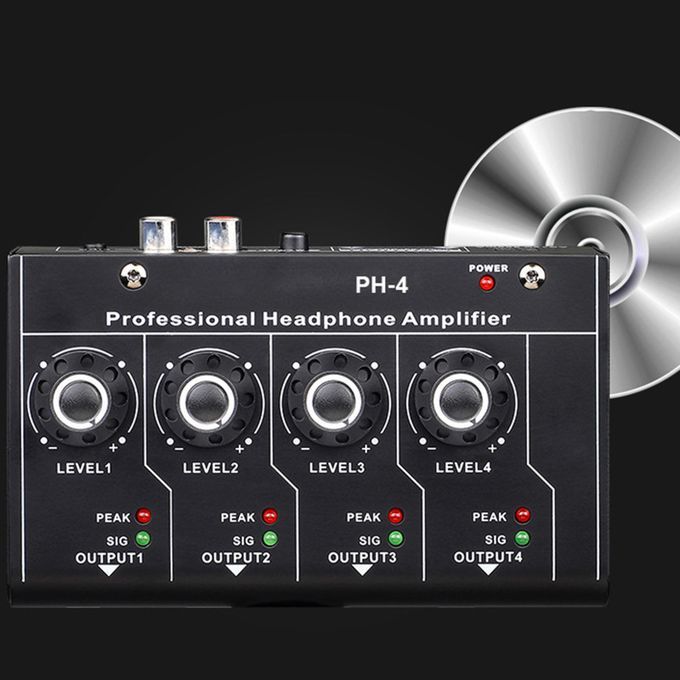 Headphone Amplifier;Compact 4 Channels Mini Headphone Amplifier Home;Headphone Amp Amplifier 4 Channels Metal Stereo;Ph-4 Headphone Output Separate Volume Control;Ac12v 300ma Power Supply 3.5mm Stereo Input;Stereo/mono Switching Various Audio Equipment