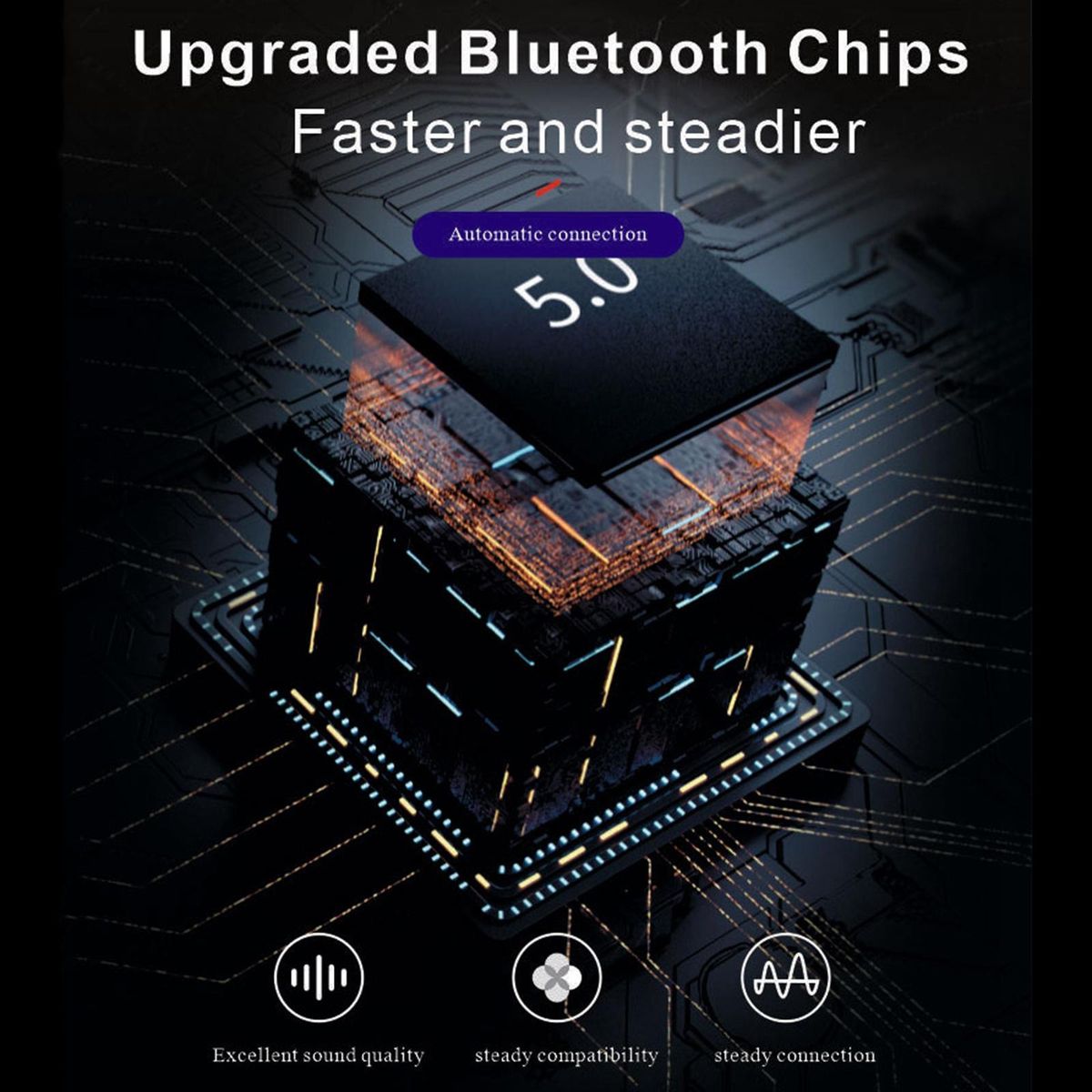Upgrade the Bluetooth chip, faster and more stable: automatically connect after booting, excellent sound quality, stable compatibility, and stable connection.