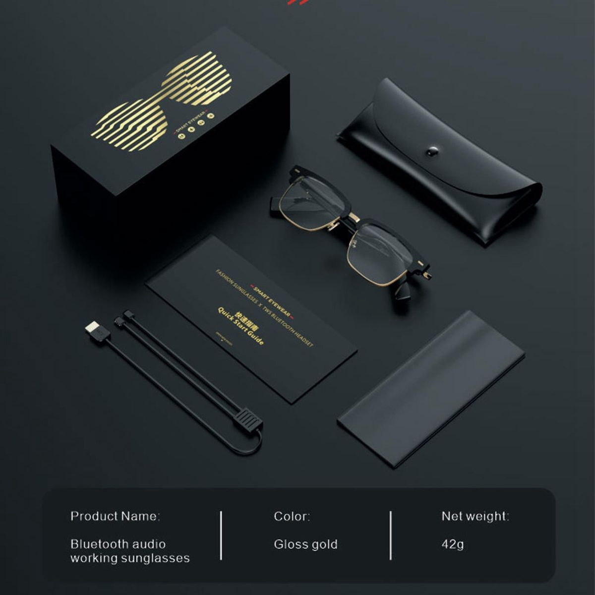 1 x Glasses1 x Glasses leather case1 x Charging data cable1 x Flocking glasses cloth