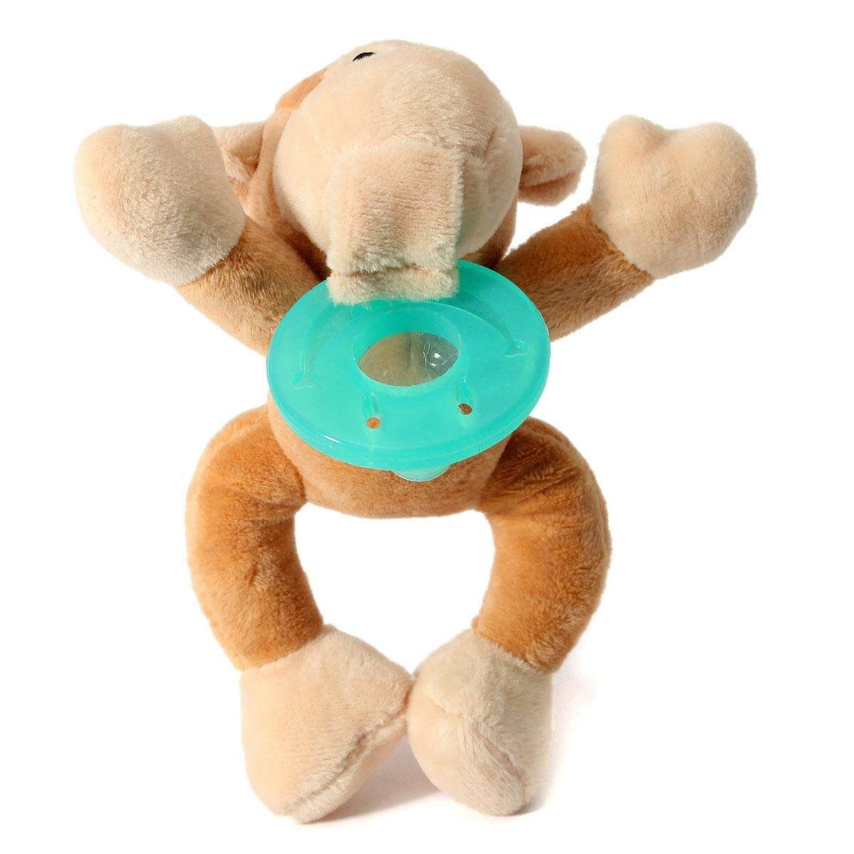 This product is a baby pacifier with plush animal. The baby can suck the and play with the lovely plush animal at the same time.