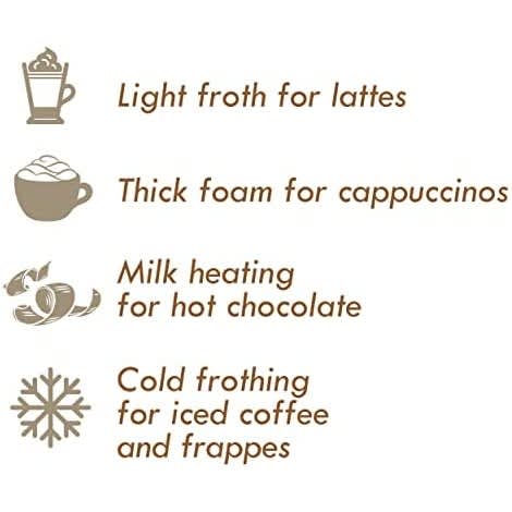 The steam-operated milk frother makes the characteristic hissing noise associated with authentic coffee shops and produces a steam that froths the milk, making great lattes and cappuccinos while also having the versatility to be able to deliver hot water for tea and other hot drinks. Just pour a little milk into a mug and flip the steam control to steam the milk until you have as much froth as you need.