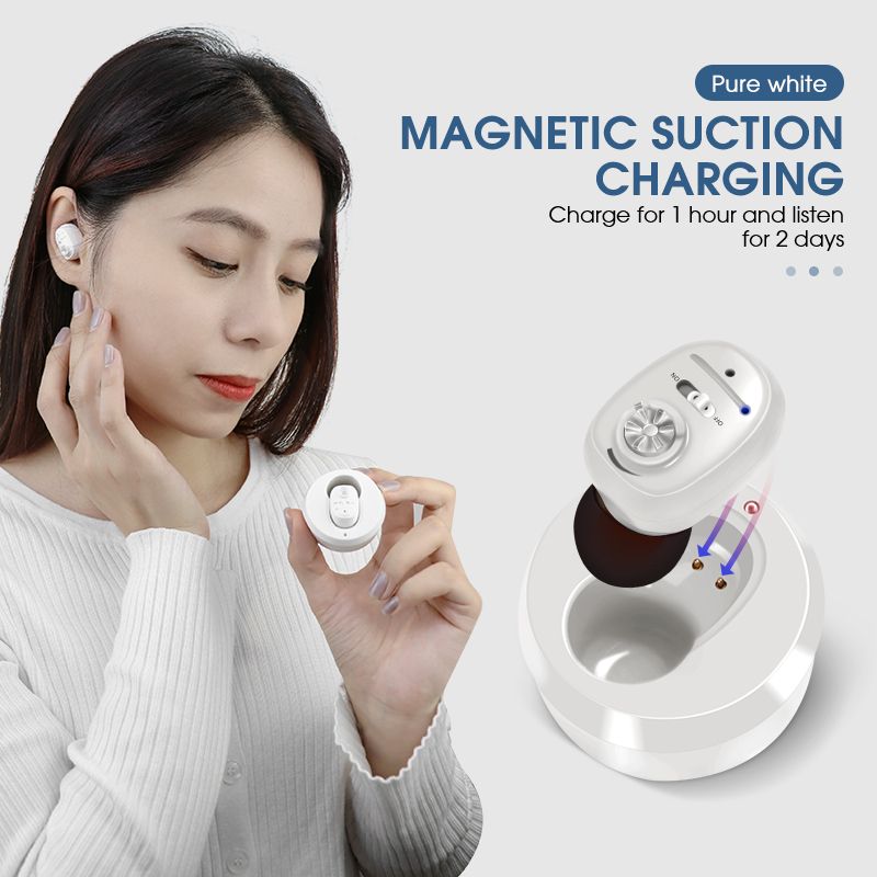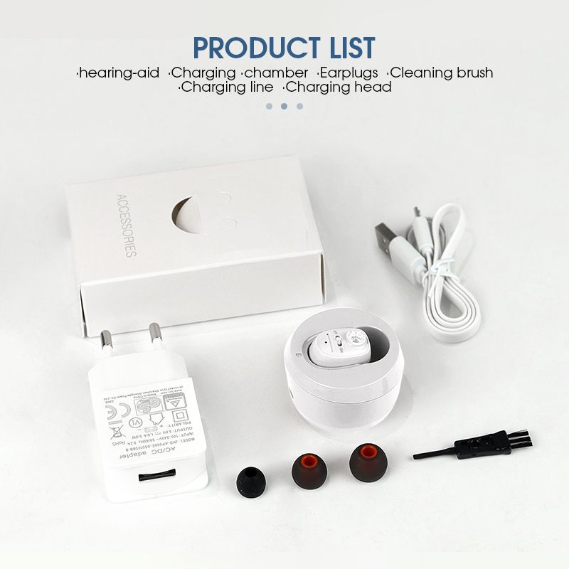 1. Stylish appearance design, Bluetooth headset visual sense, regain confidence; 2. L-shaped design concept, say goodbye to the straight line into the ear, the auricle force, ergonomic, fit ear canal, easy to wear for a long time; 3.3g weight is small and easy, but also anti-drop; 4 big knob to adjust the volume, the position is obvious 5. Equipped with a charging box, usb fast charging, can operate the hearing aid with one hand, 2 hours can be fully charged, can run for 40 hours; 6. Carefully add filter screen to filter ear oil and earwax, prolong the service life of the machine; More 1.5m anti - fall, compact, portable and easy to followAfter-sales service: Free replacement within 30 days. If you have any questions, please contact us. We will give you a satisfactory answer immediately. If quality problems occur during use, a new hearing aid will be replaced free of charge and the replacement period will be 2 years.