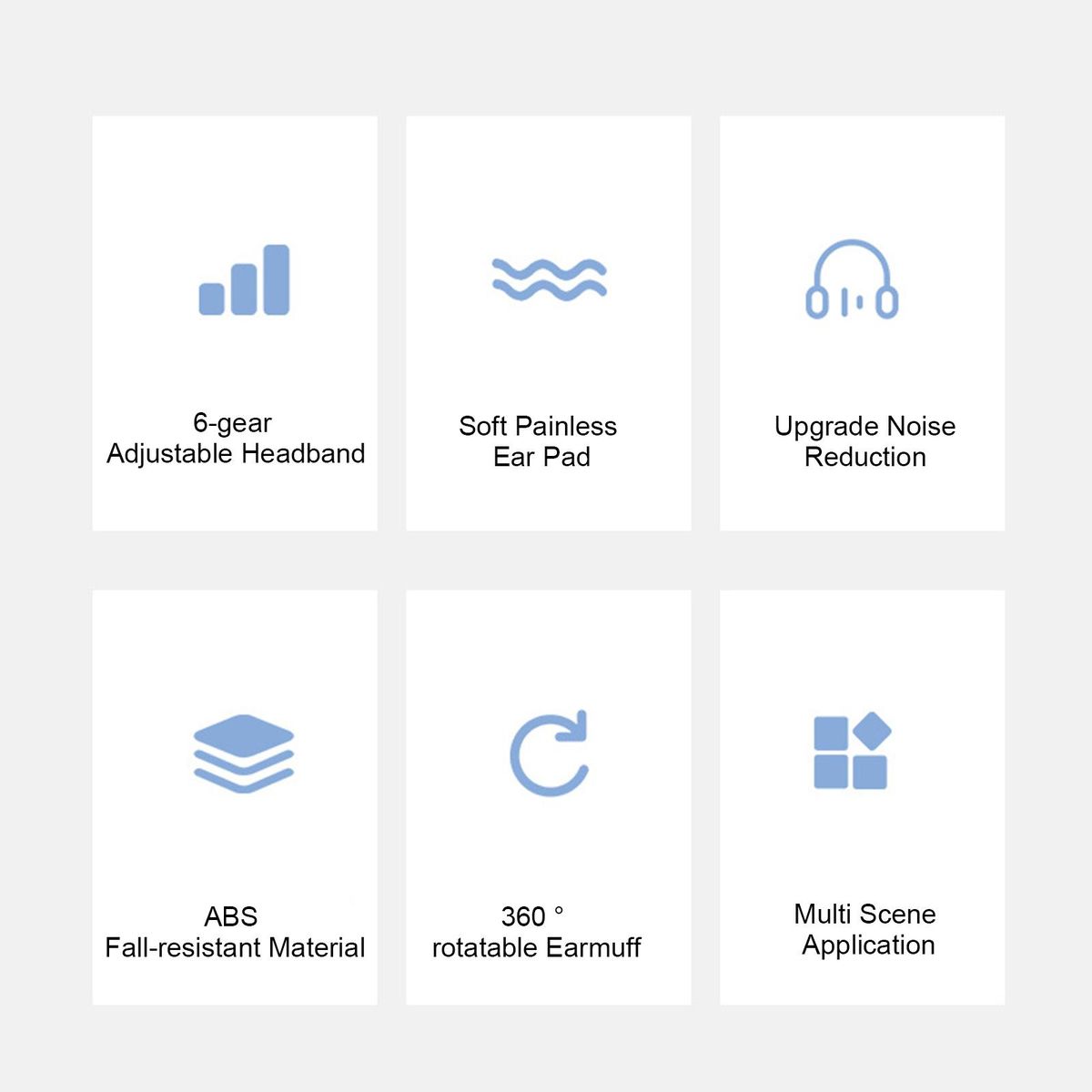 Adjustable 6-level headband with soft padding reduces the pressure on your head for comfort fit and enhancing noise blocking ability.