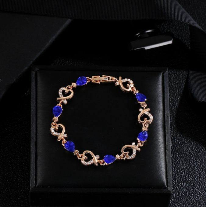 This Heart and Diamond-Shaped Bracelet allures you with it's aesthetically pleasing appearance, it's diamond studded heart-shaped amplifies the beauty of the bracelet. The blue color diamond will perfectly accentuate your wrists.
