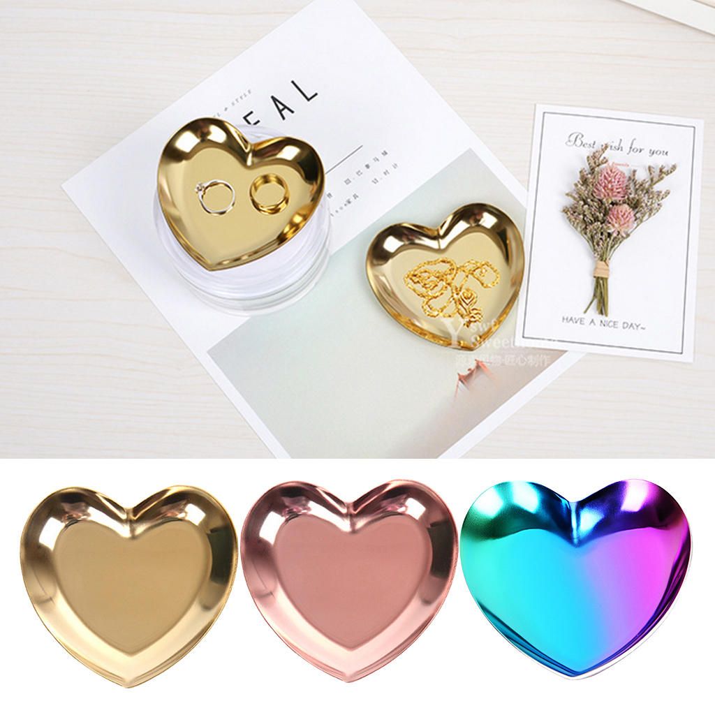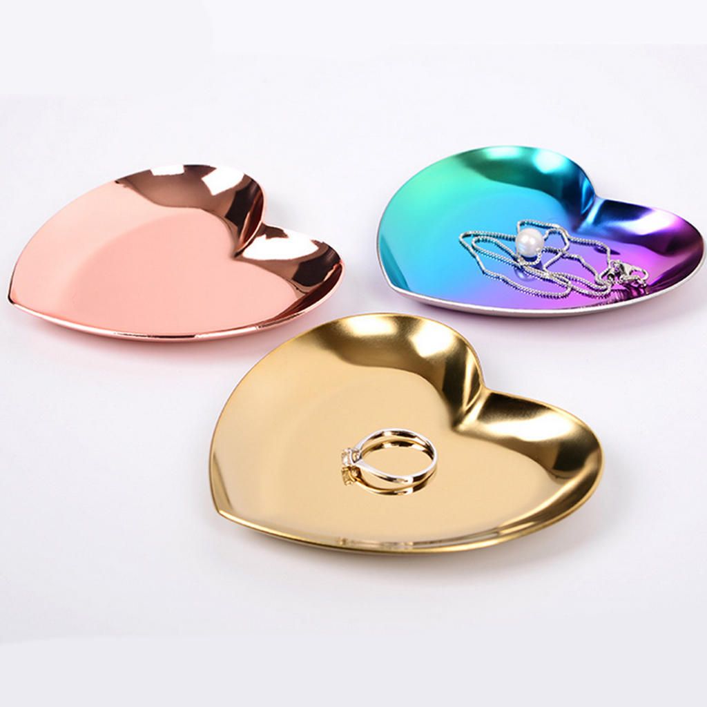 Stainless Steel Tea Fruit Tray Dish Plate Jewelry Storage Golden