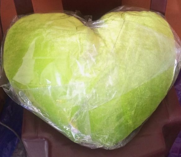 It Comes in 18" x 18" size AND IT COMES IN 1 THROW PILLOW PER BOX.The heart shape Throw pillow is made from quality material and fibre and comes with a zip cover which makes the cover removable and washable.