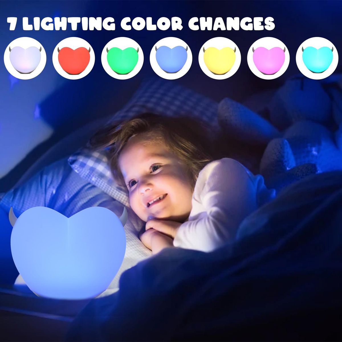 Buy Heart-shaped Lamp Soft Energy-saving Pat Change Color with 2 Pairs Replacable Decorative Corners Decompression Pinch Night Light in Nigeria