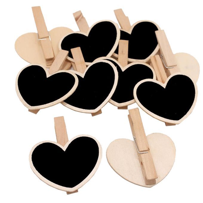 10Pcs Hanging Wooden Blackboard Message Chalkboard Clips Tags Heart ShapedSpecification:Material: woodSize: approx. 5.5 x 6.6cm/ 2.17 x 2.60inch