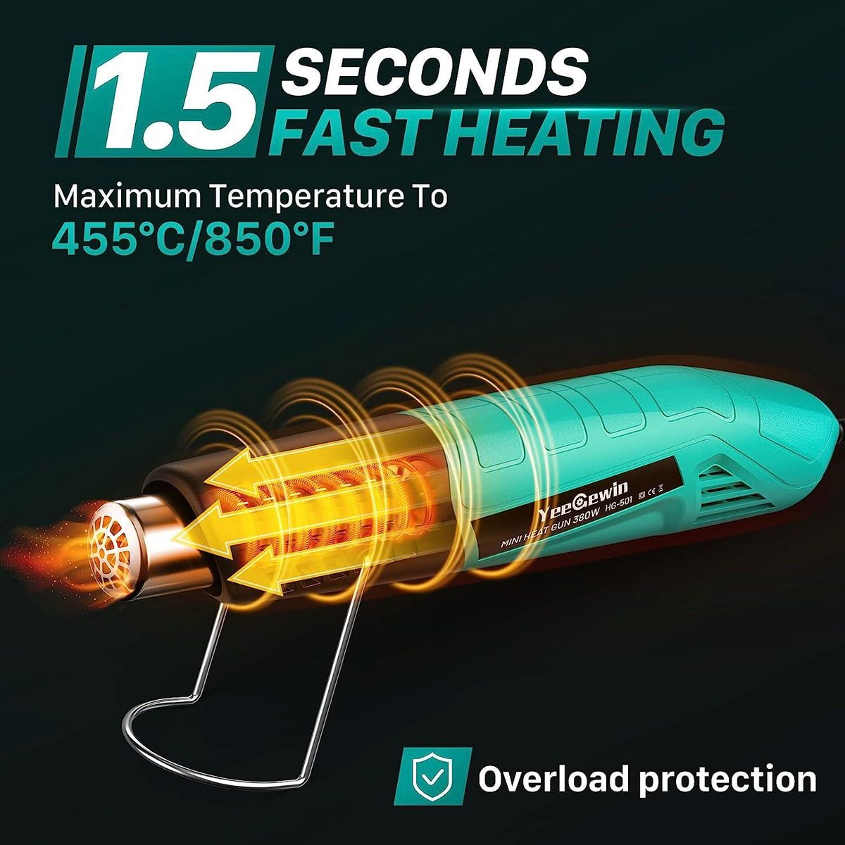 【Overload Protection】Safety is paramount when using any kind of heat gun, which is why the YEEGEWIN heat gun is manufactured in accordance with European safety standards and features built-in overload protection. If the temperature gets too hot, the circuit will automatically shut off and prevent the heat gun from being burned, extending the life of the tool and ensuring your safety.