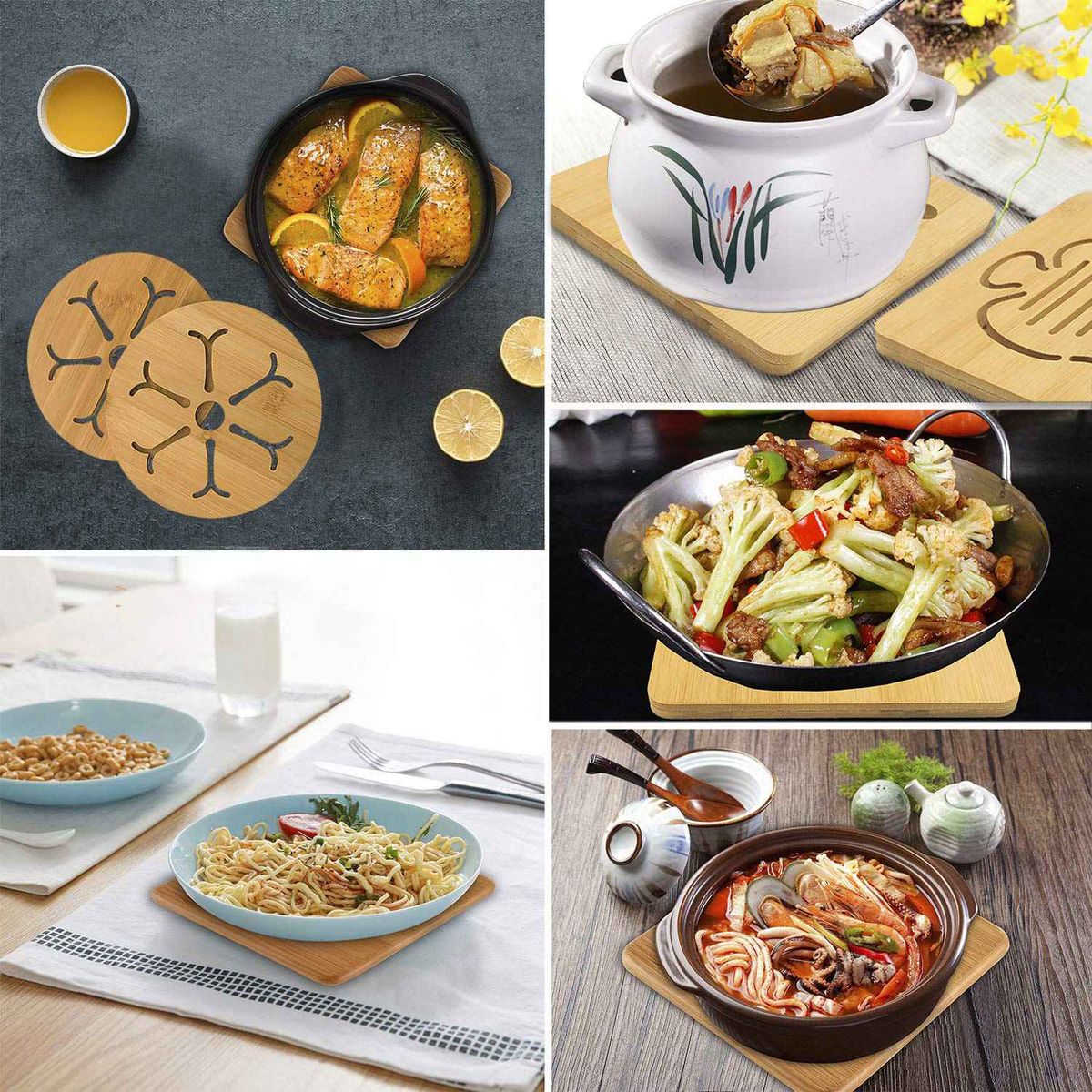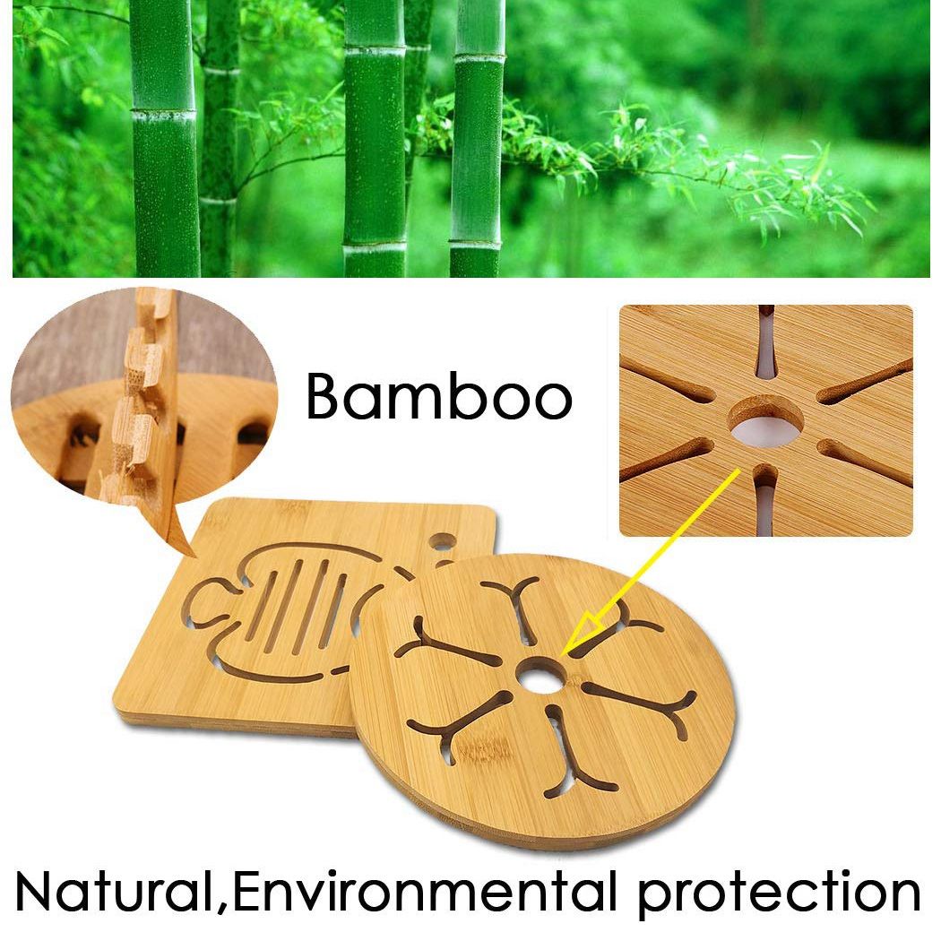 High Quality Bamboo Trivet:Kitchen heat-resistant mats can better protect countertops, tabletops, and kitchen surfaces from hot cookware,heat damage due to hot dishes, pots or pans.