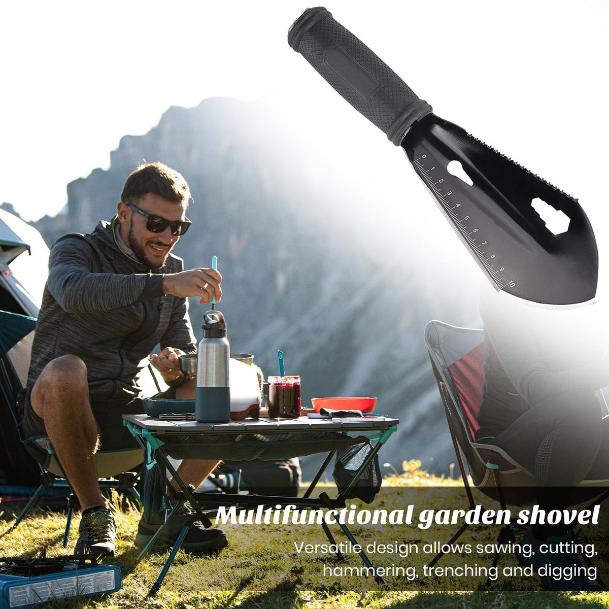 Made of stainless steel and heat-treated for strength, this compact folding shovel allows for sawing, cutting, hammering, trenching, and digging making it a true all-in-one tool. whether you're backpacking, fishing, hunting, or simply tending to your garden, our garden shovel is the perfect companion. order now and experience the convenience of our garden shovel with sharp spade design!