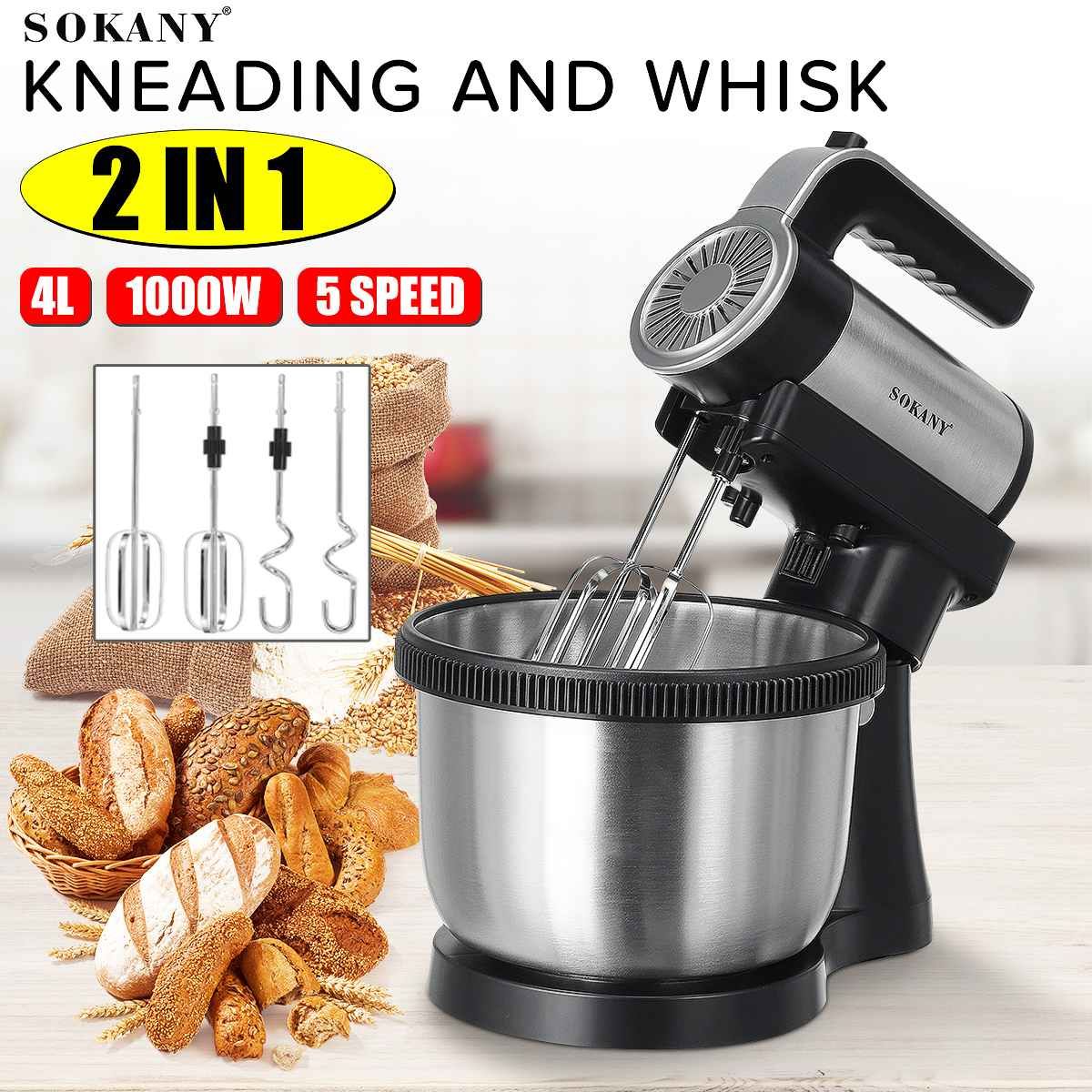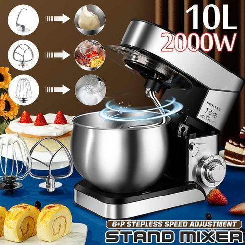 Baking With SOKANY by Homestyle Baking is therapeutic to many and it gets even better when you have the right appliances. You often crave for a good cake but are tired of all those expensive unreasonably-sugary pastries and cakes from the stores? Then why not make a cake of your own? Now it is made easy with Sokany Heavy Duty Power Stand Mixer. With this creative product from Sokany , you can make great-tasting pastries with the comfort of your own home. This is a powerful 1400W stand mixer capable of mixing up to 1.5kg of flour in its large 8L stainless steel bowl. High-Functioning Mixer from SOKANY by Homestyle Elevate the ordinary to extraordinary with help from this Sokany Heavy Duty Power Stand Mixer. The mixer smoothly offers remarkable ease and exceptional versatility. Equipped with a powerful motor, this amazing mixer comes in handy as a stand mixer when it's time to mix those heavier concoctions like garlic mashed potatoes or chocolate-chip cookie dough. It also works well for effectively kneading and thoroughly mixing yeast dough with the included pair of hooks--effortlessly prepare dough for homemade pizza, French bread, garlic bread sticks, and more. Perfect Baking Mate from SOKANY by Homestyle The SOKANY Heavy Duty Power Stand Mixer is the ultimate kitchen appliance for baking lovers. A powerful 1400W motor helps you can effortlessly whisk, mix and knead, batter or dough with its planetary mixing motion. This stand mixer is stylish with a sleek silver design and also benefits from sturdy rubber feet so whilst it's mixing the appliance stays firmly on your kitchen top. High Quality from SOKANY by Homestyle Achieve high-quality results from the SOKANY Heavy Duty Power Stand Mixer as you select the exact speed required for your ingredients. The extra pulse setting allows for intermittent mixing. Our Stand Mixer comes with 3 attachments that allow you to do a variety of cooking techniques at great ease and convenience. The durable dough hooks make mixing dough and heavier cake mixes easy. The beater is perfect for whisking egg whites, creaming ingredients and for light cake mixtures or batters, while ensuring nothing sticks to the bowl. Secure, Comfortable and Easy from SOKANY by Homestyle There is no need to worry about splashes and spillages with the SOKANY Heavy Duty Power Stand Mixer as the detachable splash guard prevents you and your kitchen from getting messy. Unlike other Stand Mixers, this has a durable 8 liter stainless steel bowl, so you can prepare large volumes of ingredients perfect for large celebration cakes. It is also dishwasher safe and easy to clean.