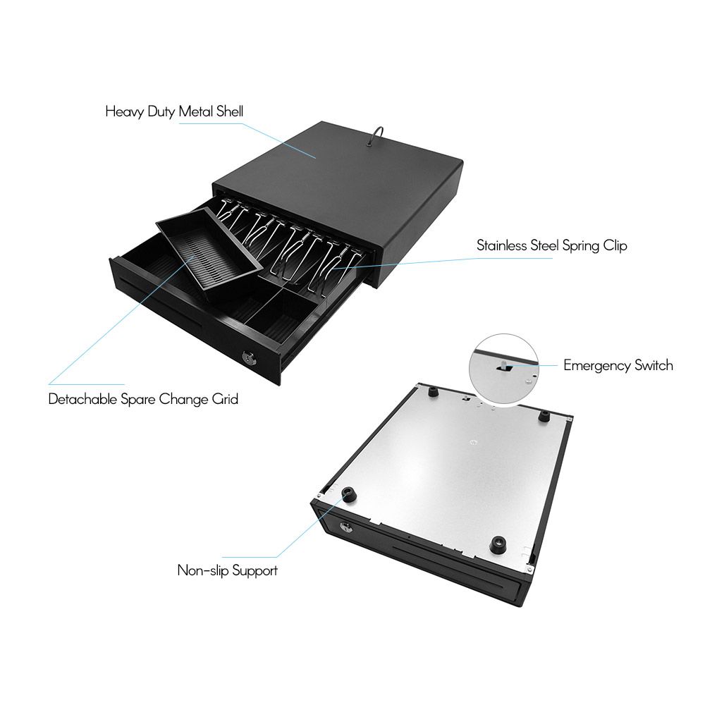 Long service life -- stainless steel spring clip with high elasticity bears repeated work of high strength; roller ball bearing ensures smooth sliding of the cashbox.