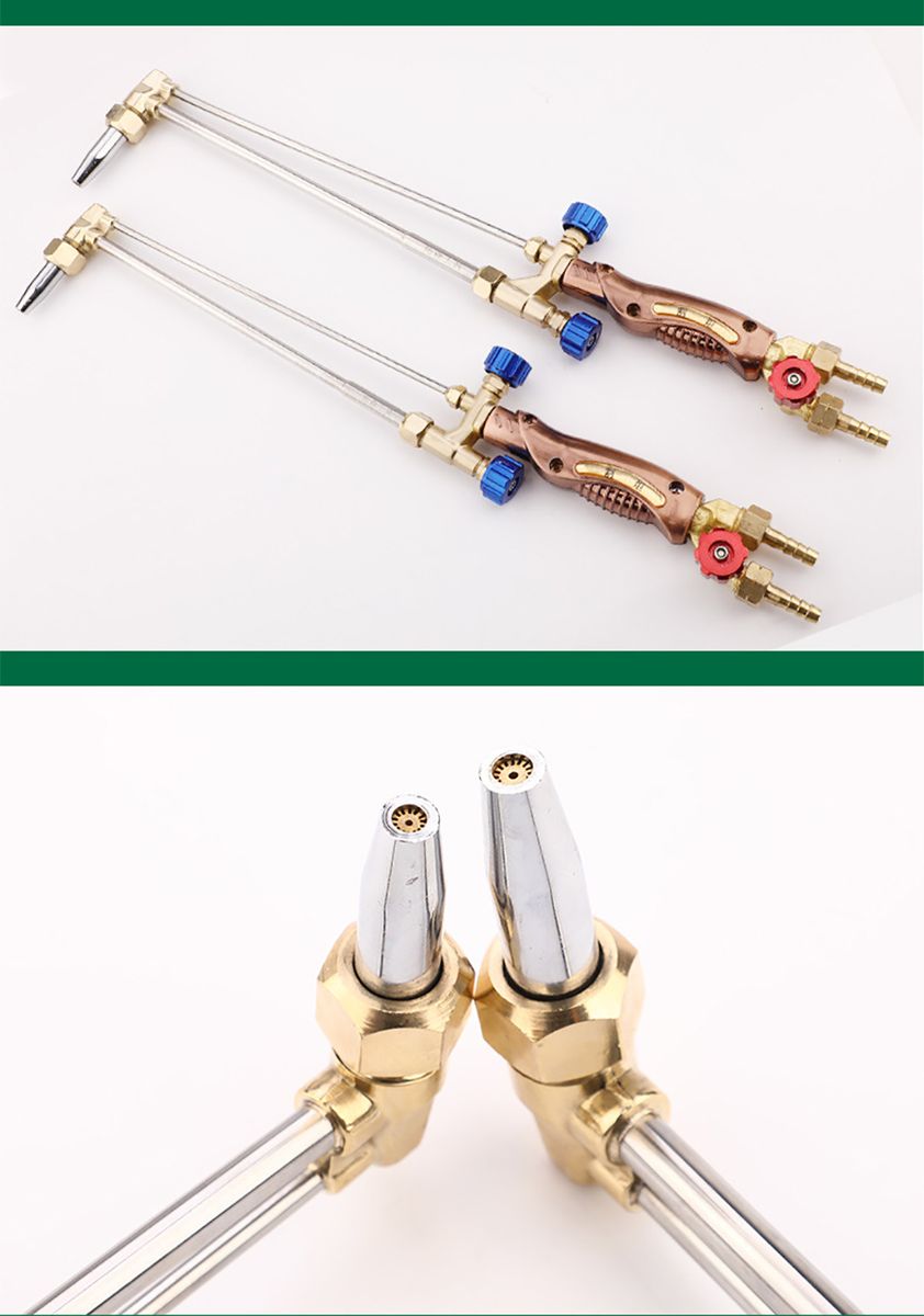 The cutting head of quot;stainless steel amp; brass type quot; cutting torch is electroplated with brass, with multiple holes, which has longer service life than the quot;red copper amp; brass type quot; cutting torch.