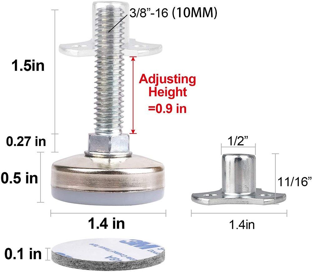 Adjustable Furniture leg Levelers for Tables Chairs Cabinets Sofa 3/8"-16 Thread, Support 1320LBs