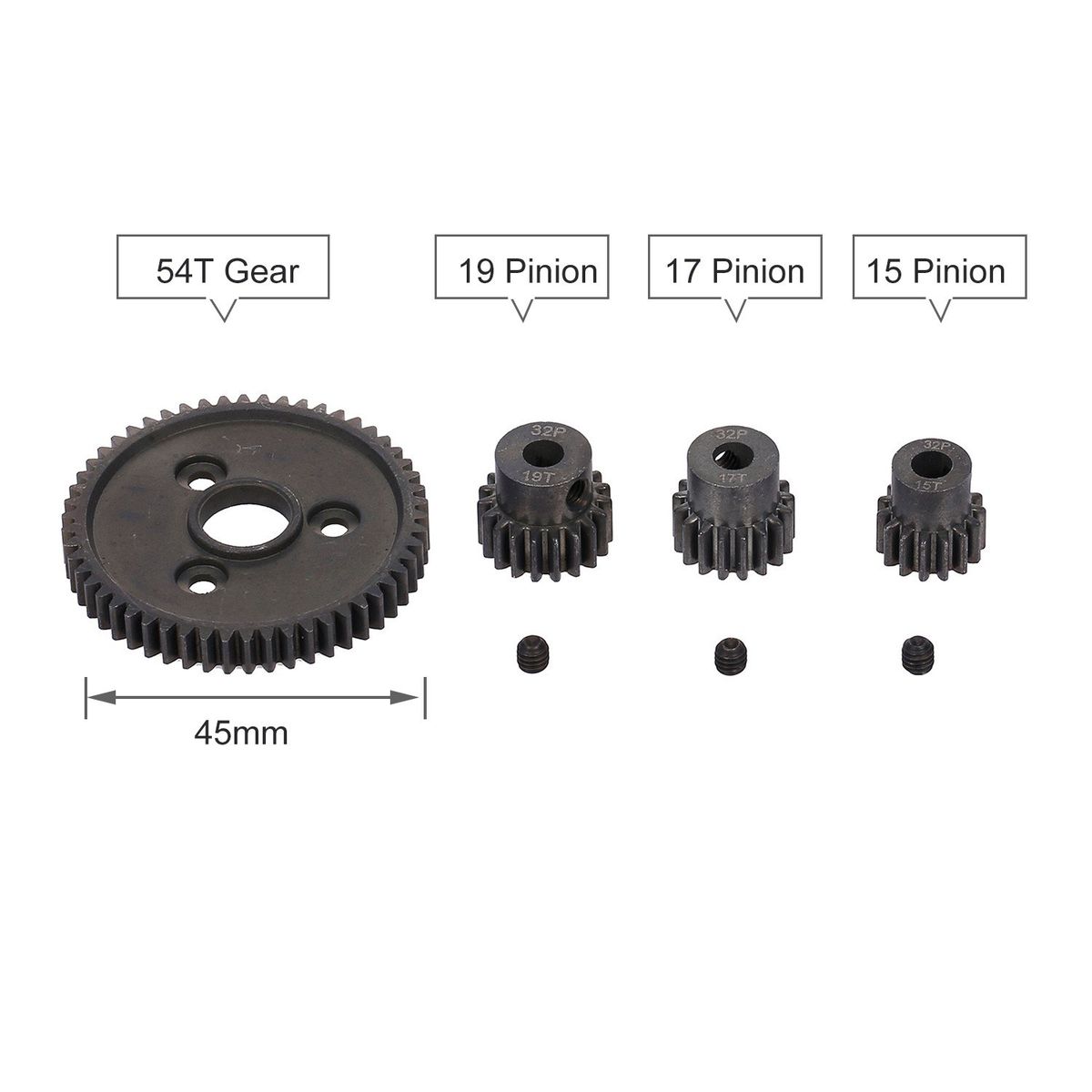 Heavy Duty Hardened Steel Spur 54T Gear with 15T/17T/19T Pinions for Traxxas Slash 4x4 Stampede 4x4 Traxxas 1/10 SUMMIT Trxxas 1/10 E-REVO.