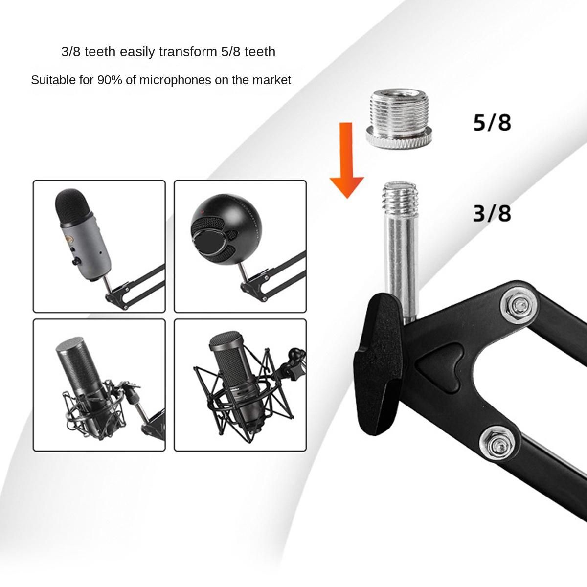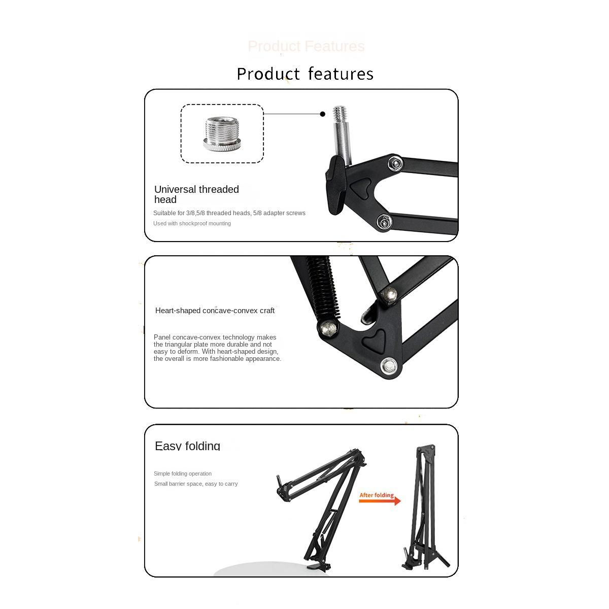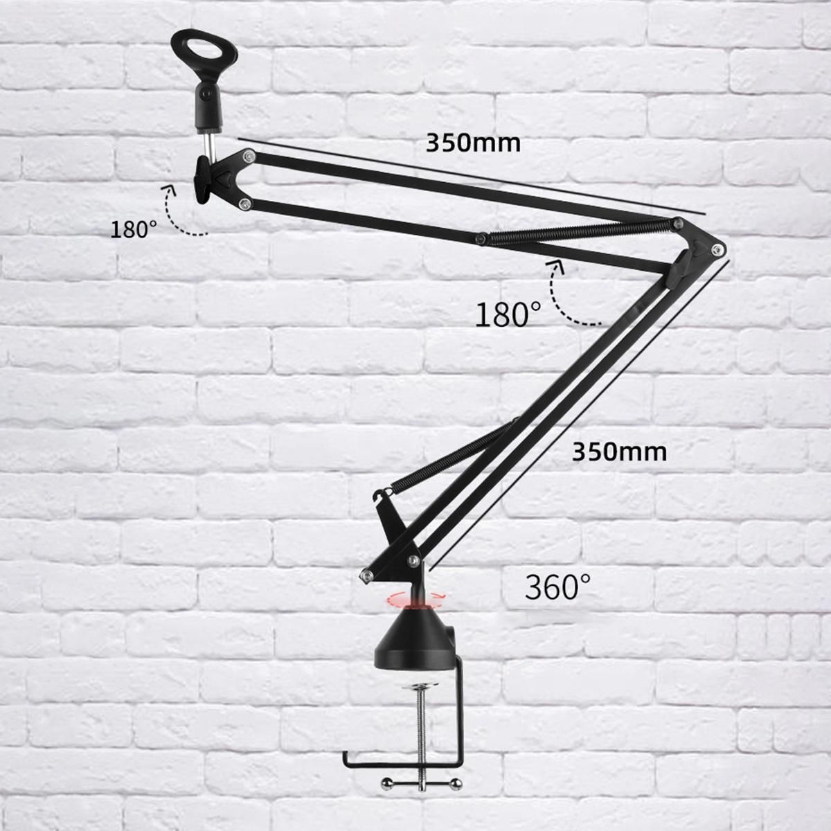 ADJUSTABLE SUSPENSION BOOM SCISSOR ARM STAND:Adjust the suitable angle and height to show your perfect voice; Can be mounted on the announcers' table with the table mounting clamp