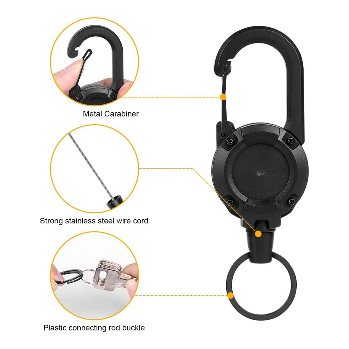 [Wide Application]Retractable key ring can be widely used in office, home and outdoor activities, such as fishing and hiking, and can be used with ID cards, access cards, keys, etc.