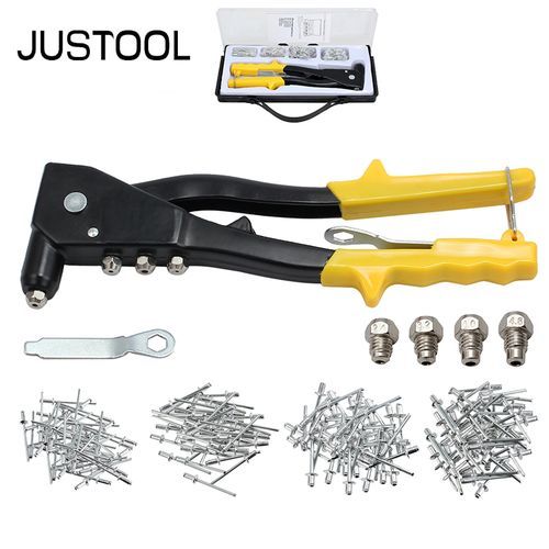 1X JUSTOOL Heavy Duty Riveter Set with 200 Rivets Manual Pop it Metal Rivet Gun Tools and Blinds Remaches Rivetsortment Kit Set