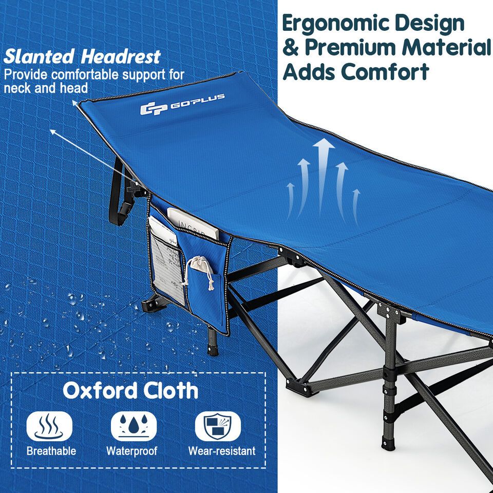 - Made of high-quality waterproof oxford, the collapsible sleeping cot is wear-resistant and breathable, ensuring coziness and durability.