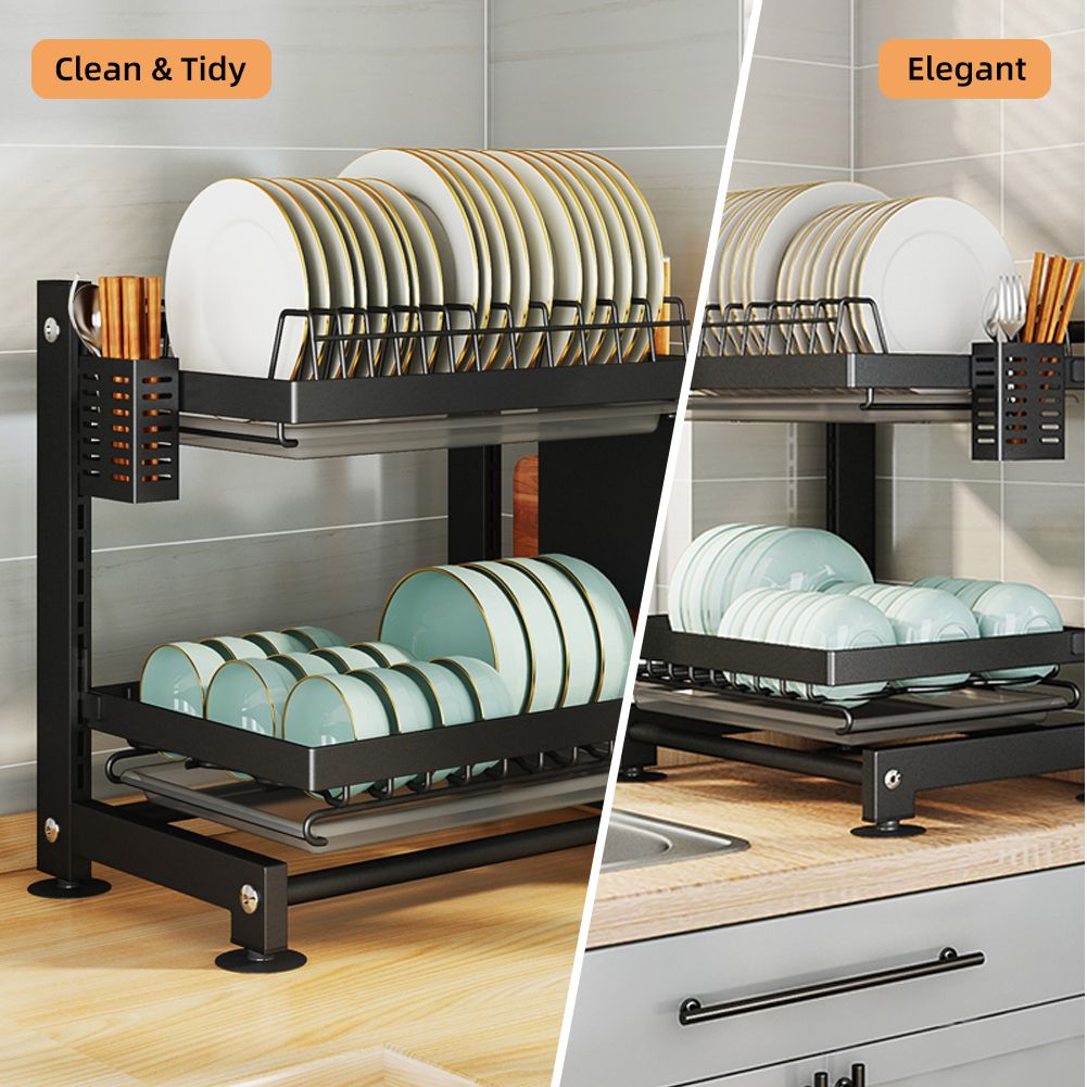 Adjustable Height: The height of each tier can be adjusted by hook joints. You can adjust the height of each tier according to the size of tableware. Don\'t worry that plates are too big to fit in the rack.