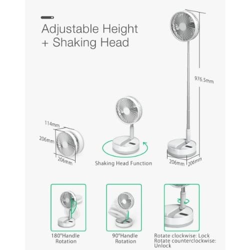 Foldable and Compact Design Foldable handle design, you can adjust the handle into any angles you like. Convenient to hold in hand, or just fold the handle and put on the desk. Ultra-compact desk fan that can easily be slipped into your backpack or bag, take the fan with you anytime, anywhere.