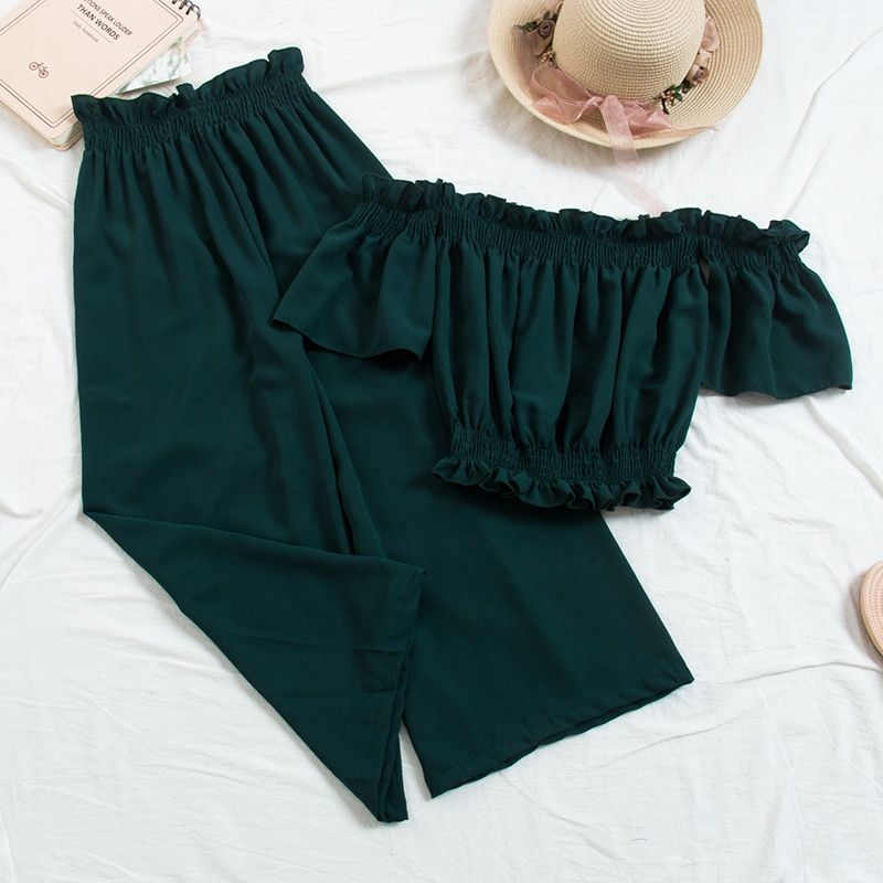 1X Heliar 2020 Spring Two Piece Out fits Women Off Shoulder Jumpsuits Palazzo Playsuits Party Ruffle Strap Women Summer Jumpsuits