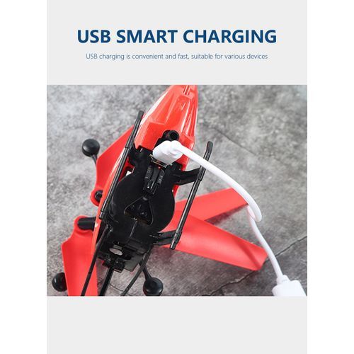 Product features: induction suspension ~ aircraft, palm control, automatic take-off in three seconds, automatic power off when stuck, flexible fan blades, not easy to break, built-in lithium battery, USB charging