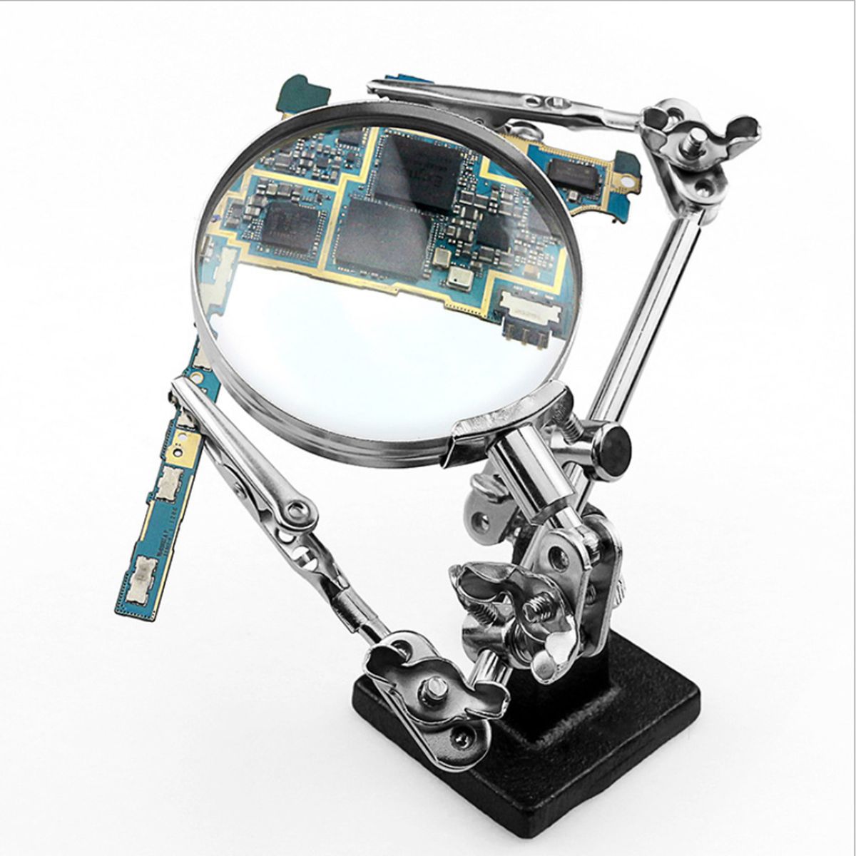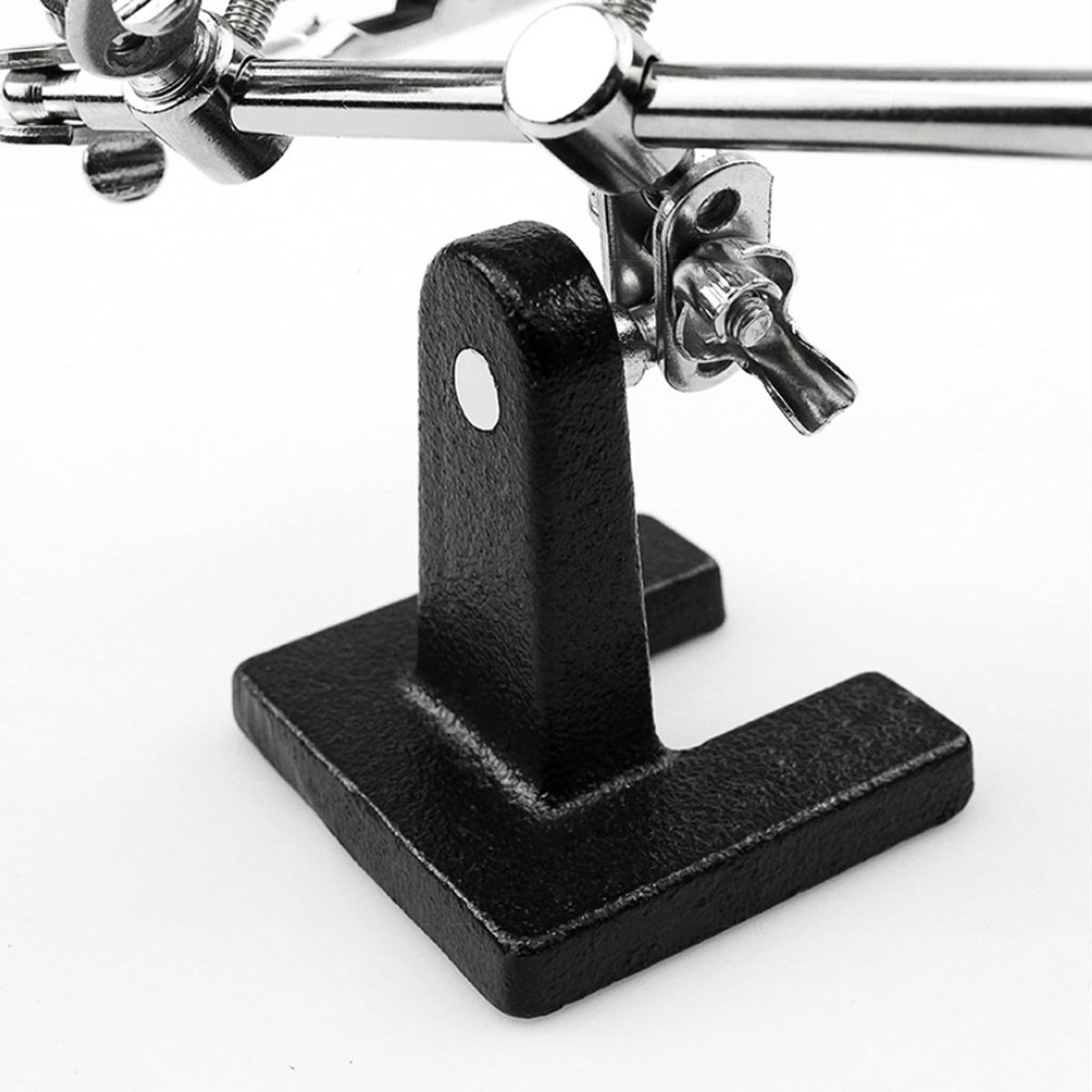 This product consists of a magnifying glass, double arm, pliers set, iron support. Helping quality hands with solid heavy duty cast iron base, used for welding and working with small s. Useful tool for electrician, engineers, jewelers and more.