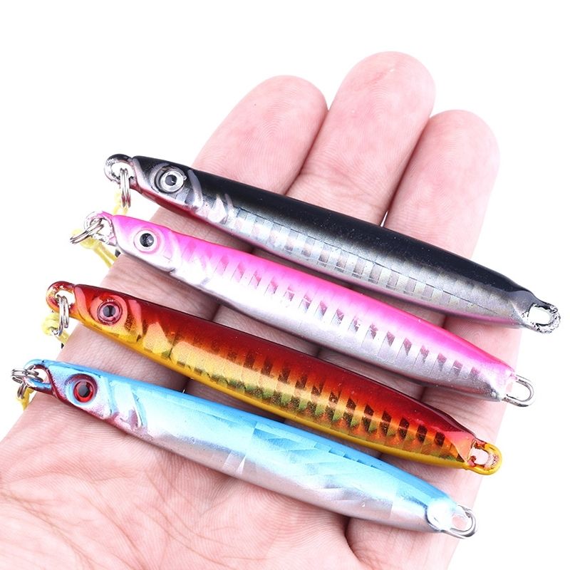 1. Iron plate luminous lead baits with bright colors to attract fish, unique movement that provokes predator to bite.