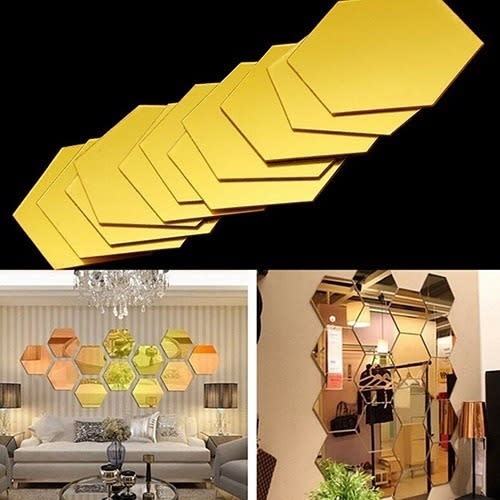 Buy Hexagon Medium Mirror Wall Decor - Gold - 12 pcs - 126*110*63mm in Nigeria