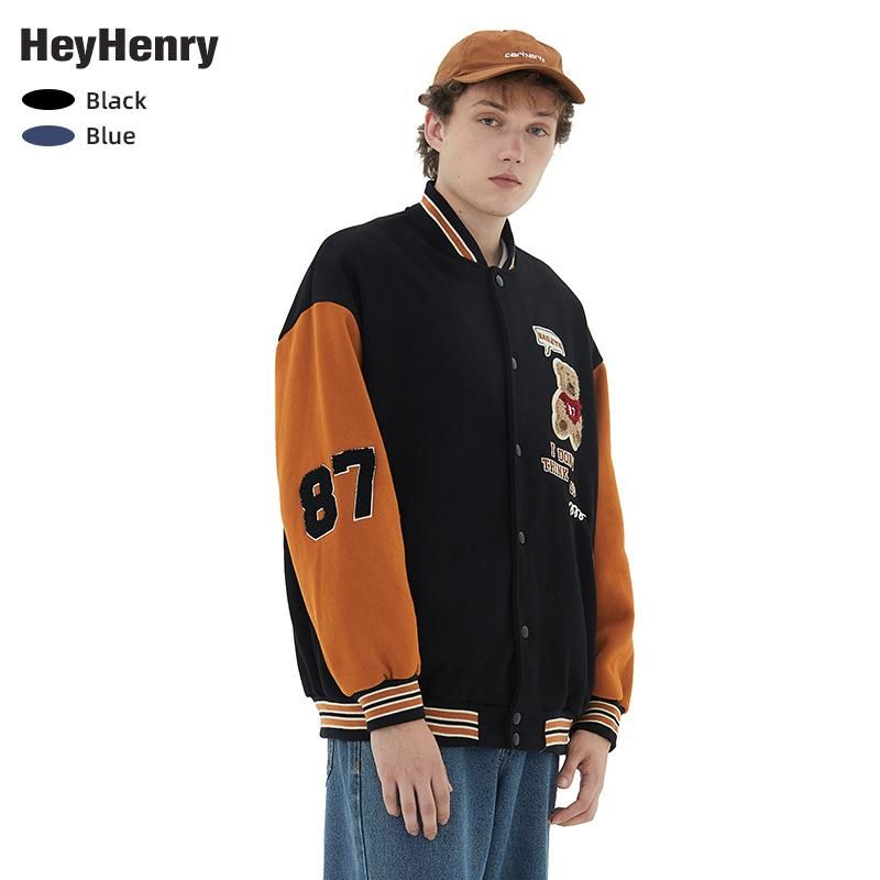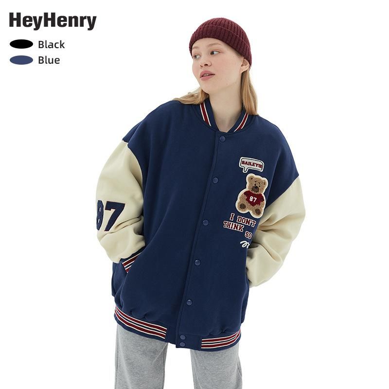Buy HeyHenry plush baseball jersey casual bear letter academy jacket jacket jacket for men and women in Nigeria