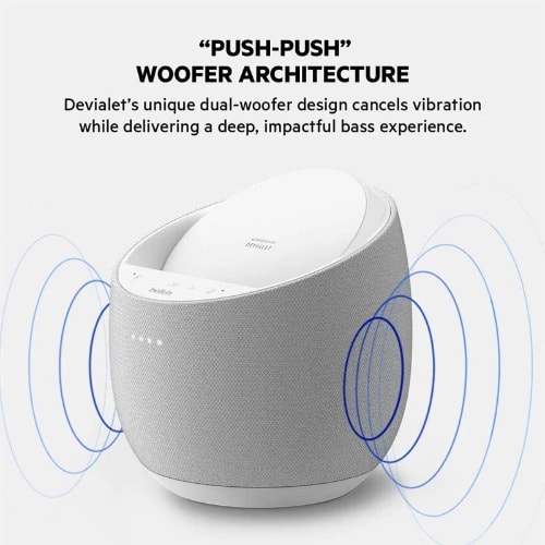Computational AudioThe Apple S5 chip enables computational audio, which processes complex algorithms in real time to help produce balanced, fine-tuned sound at nearly any volume and provide the full, detailed tones of a larger speaker without missing your voice commands. The full-range driver uses a powerful neodymium magnet to deliver deep bass and crisp high frequencies.