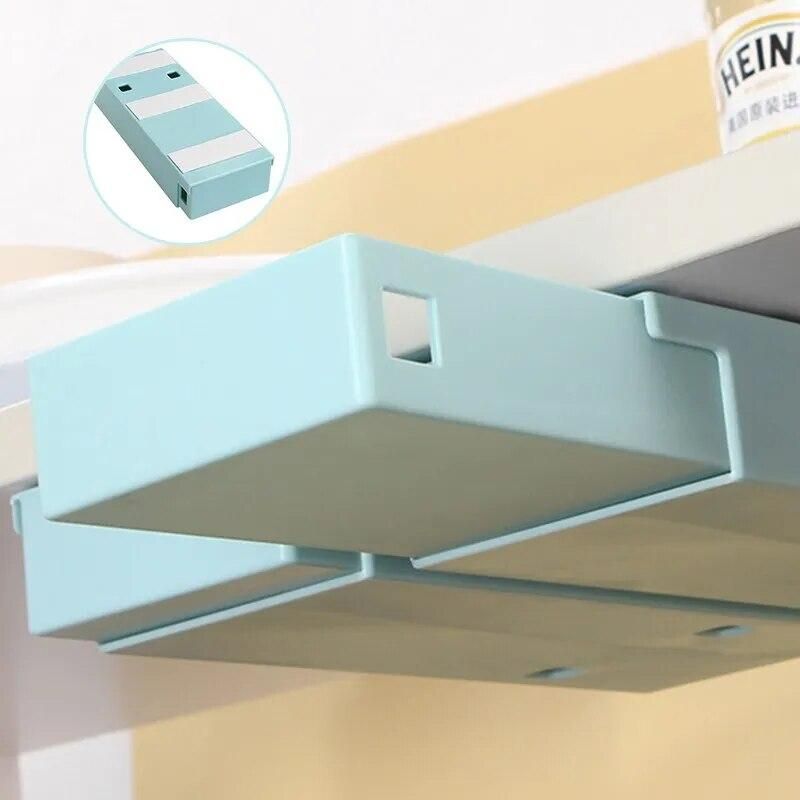 Buy Hidden Storage Drawer Organizer Hanging Punch-free Blue Storage Boxes Under Table Self-adhesive Drawer Case Sundries Container/0 in Nigeria