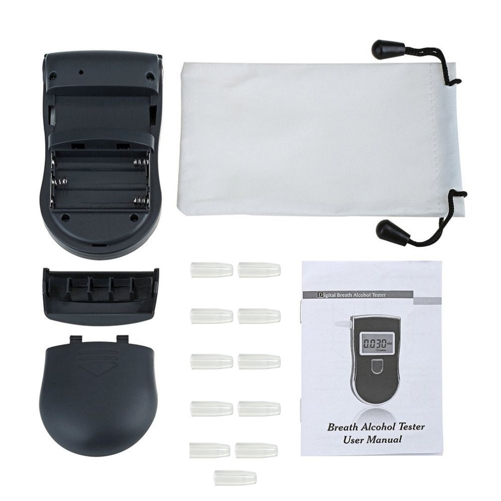 Tips: 1.There is a protective film on top of our product that can be torn off! 2. In order to get more reliable record as poible, advise that you should make the test at least 25 minutes ar drinking. 3. There are five embedded mouthpieces at the back of the product. Features: 1. Smart MCU control 2. Advanced flat surfaced alcohol r 3. Quick response and resume 4. SMD aembling, stable performance 5. Direct testing proce LCD indication, BAC 0.000%, 0.00 %0, mg/l 6. Breathalyzers with one on operating 7. Digital LCD display with light blue backup 8. Portable and fashion design 9. Audio warning beyond preset limit r Fault Self checking 10. Battery saved design, low voltage indication Description: 1. Color: Black 2. Dimension: 112*61*29mm 3. r type: Flat surfaced alcohol r 4. Working Current: ? 120mA 5. Working Envment: Temperature: -10 to 50 degree 6. Detection Range: 0.001.00mg/L 0.0000.199%BAC; 0.001.90g/L; 0.001.99BAC 7. Alarming Level: 0.25mg/L (0.05%BAC, 0.50g/L; 0.50BAC) 8. Accuracy: 10% F. S 9. Response Time: 5s 10. Resume Time: 15s 11. Display: 3 digits LCD display with light blue backlight 12. Battery: 3 x AAA Batteries( not included) 13. Battery expectancy time: 200Time