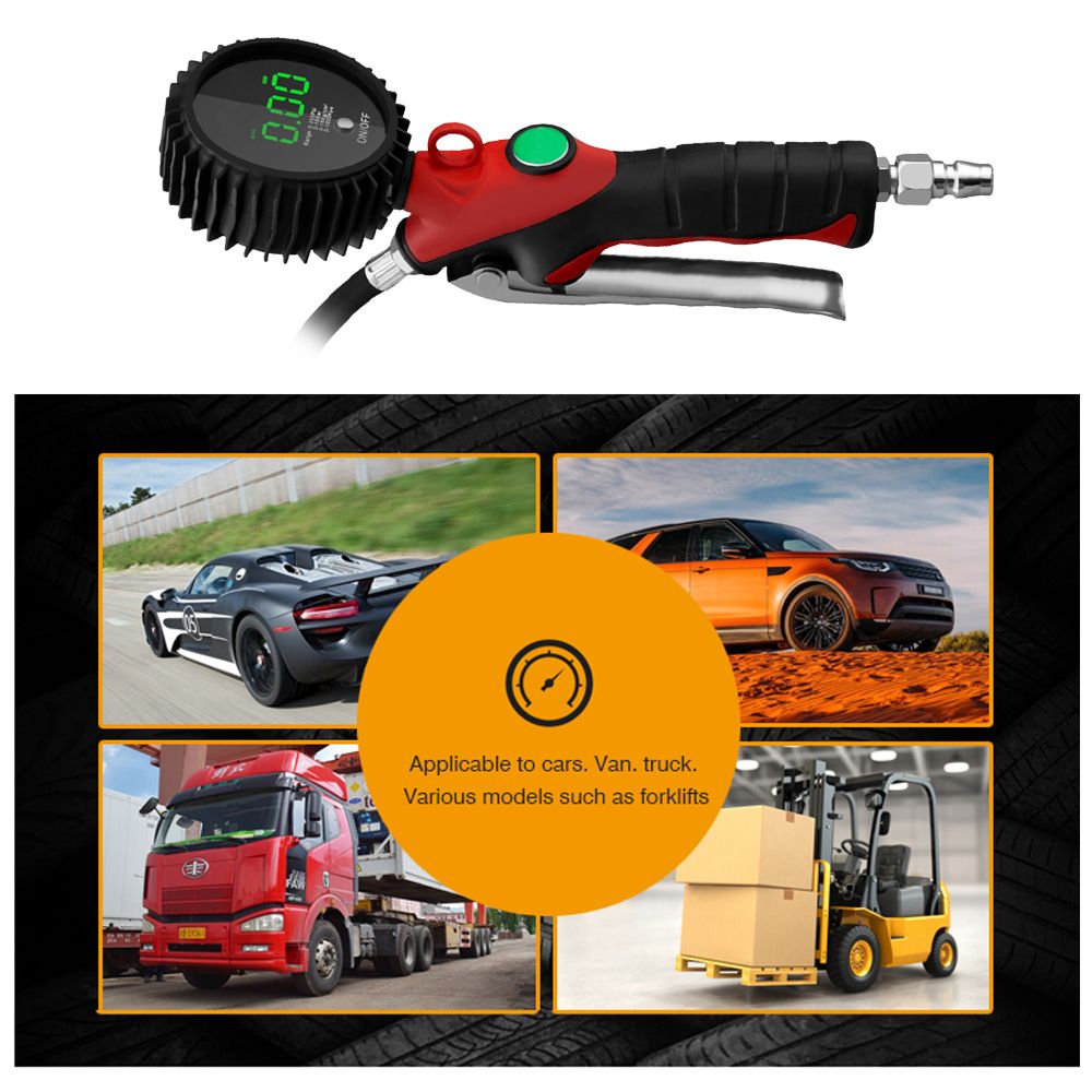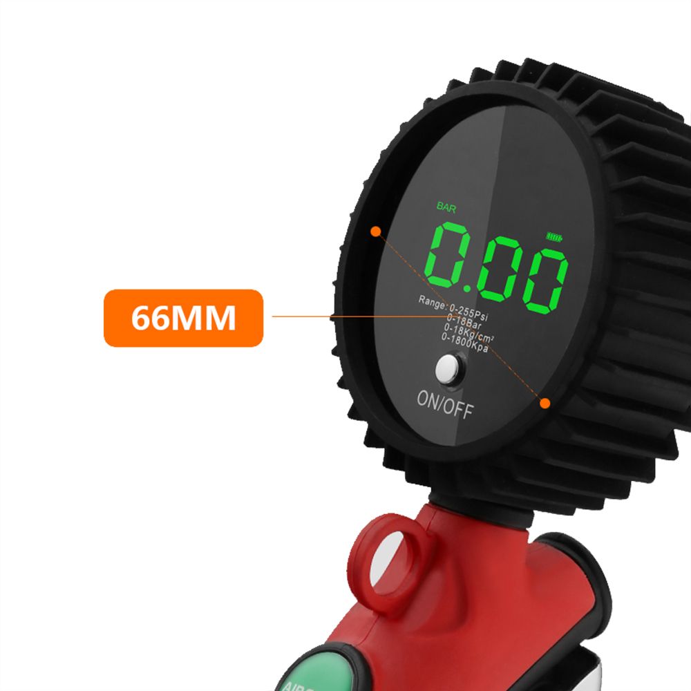 The device has several functions of tire inflating amp; deflating, and tire pressure testing, features of clearly LED digital display, 4 measurement units, 180bar pressure limited, high accuracy, etc.