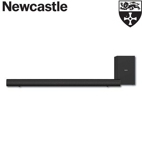 This SOUNDBAR system features Bluetooth 4.0 connectivity that allows you to play songs from your smartphone and tablet. You can play your favorite song from SD card using the provided USB card reader. The sleek design complements the house interior. 5.08 cm (2) full range driver and 20.32 cm (8) subwoofer driver; Sleek soundbar fits discreetly under your flat panel TV; Two slim satellites can work separately or combine together to a soundbar; Innovative automatic multi-color LED on subwoofer; Crystal clear sound and heart thumping bass; Bluetooth 4.0 version; Bluetooth operation range works at up to 15 meters; Plug and play USB/SD card reader; USB reader supporting MP3/WMA dual formats decoding; Uninterrupted digital FM works on PLL technology; FM storage for up to 100 stations; Bright white LED display with a clear view angle; Wireless Play your desired song and FM station directly with numeric keys on the remote.