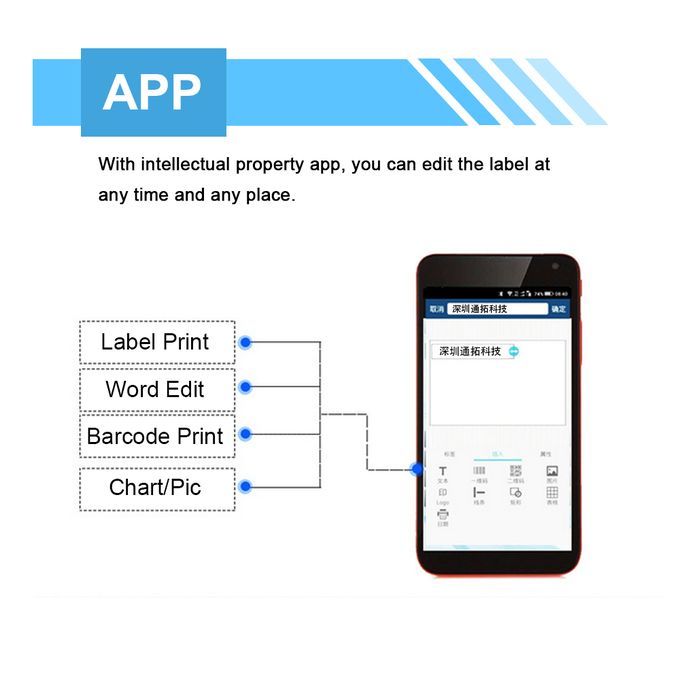 Note: The width of label paper we send is 56mm. You can search "MHTLabel" to download APP on you mobile phone.