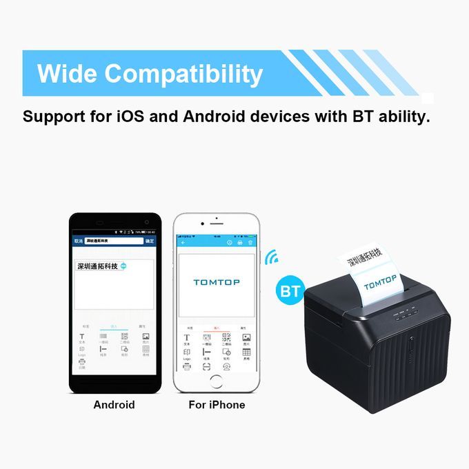 This has provided the fastest, the most reliable and affordable way to print your labels or barcodes. Supports up to 8 devices(for Android or iOS) or 8 apps at the same time and offers printing speed up to 90mm/s. It is widely used in shopping malls, supermarkets, retailers, takeaway delivery, restaurants, and etc.