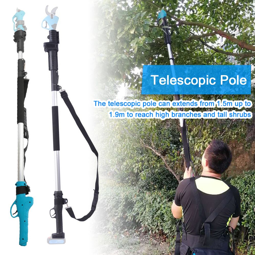 The telescopic pole can extends from 1.5m up to 1.9m to reach high branches and tall shrubs.