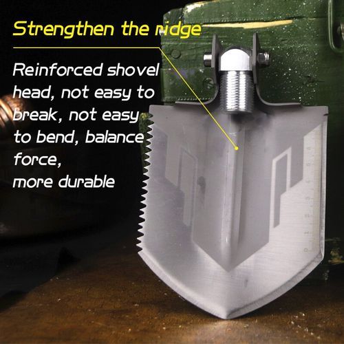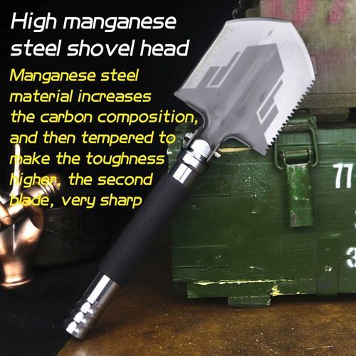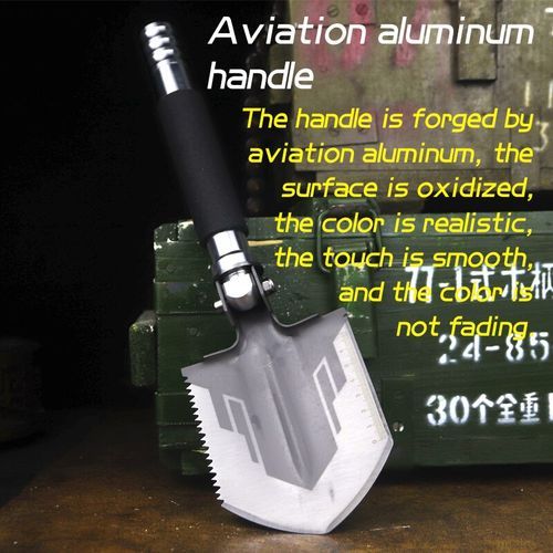 ?Product?informationName:?shovelTotal?length?:35.5?cmShovel?:10x?12?cmShovel:?manganese?steelHandle?material:?aluminum?alloyThickness?:4.5?mmHardness:?48-50?HRCTacticallength?:8.8?cm
