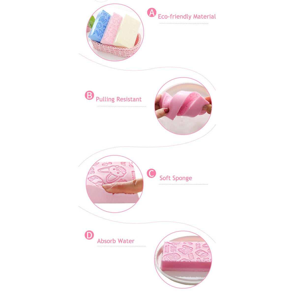 The dense soft sponge effectively cleans the dirt and drives away the fatigue of the day.