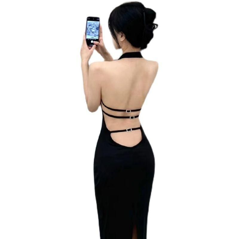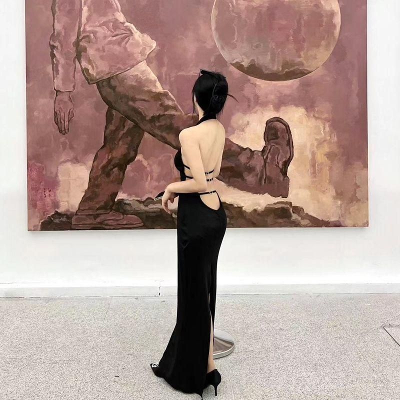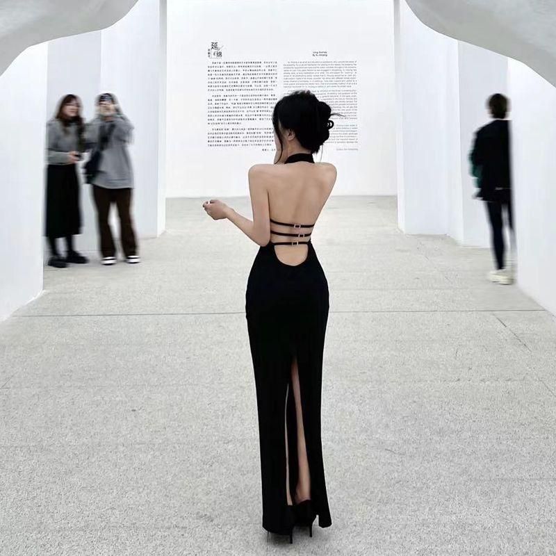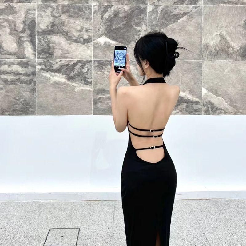 Buy High-End Affordable Luxury Niche Slim Fit Slimming French Black Sexy Backless Halter Dress for Women 2023 Summer New in Nigeria
