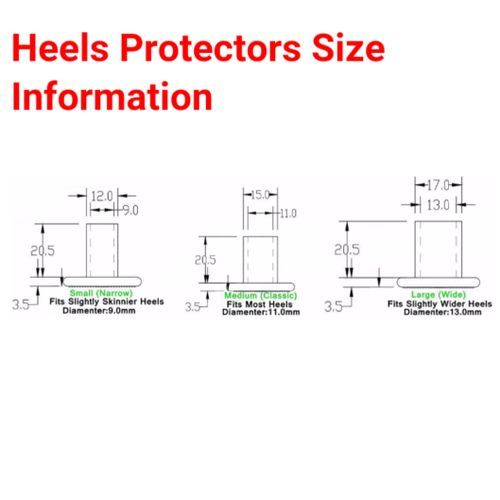 Sizing: They are available in small/narrow size for thin heels, medium and large sizes(i.e about 8-10 mm, 10-12mm, 12-14mm in width) respectively.