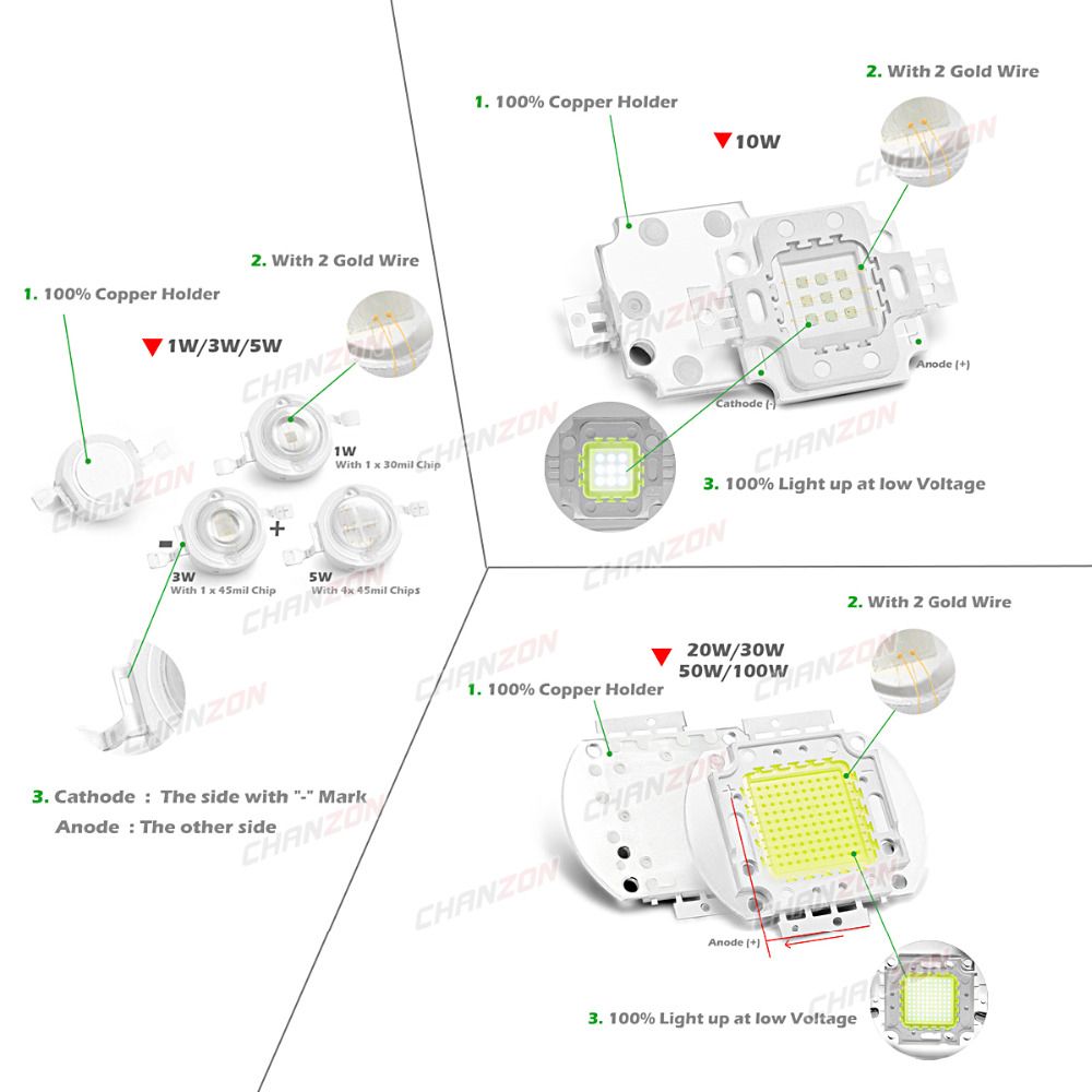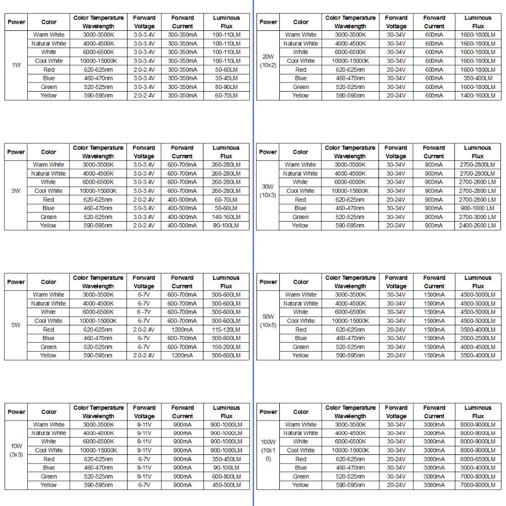 Voltage:1W/3W/5W(3V-6V)-10W(9V-11V)-20W30W50W100W(32V-34V)