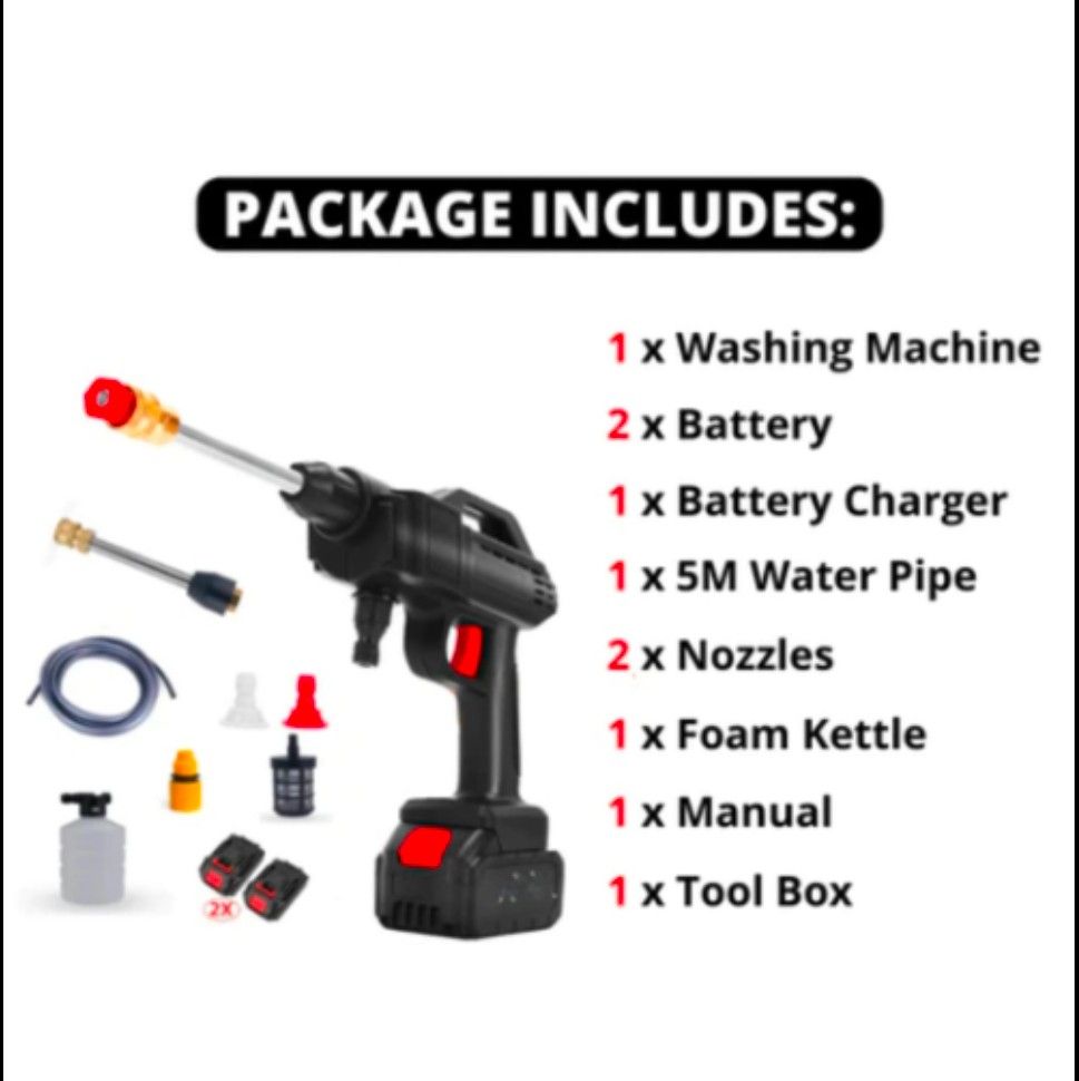 Our Portable Rechargeable Pressure Washer with 48V Batteries offers unmatched convenience, powerful performance, and water conservation benefits. Whether you're cleaning your car, outdoor furniture, or tackling household chores, this portable pressure washer has got you covered. Order now and experience the freedom of hassle-free cleaning anywhere, anytime!