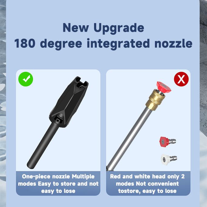 Pressure Rich Nozzle - Comes equipped with a 0 nozzle for long and powerful rinsing or garden watering, and a 180° nozzle for extensive car surface cleaning to wash the car quickly and easily.